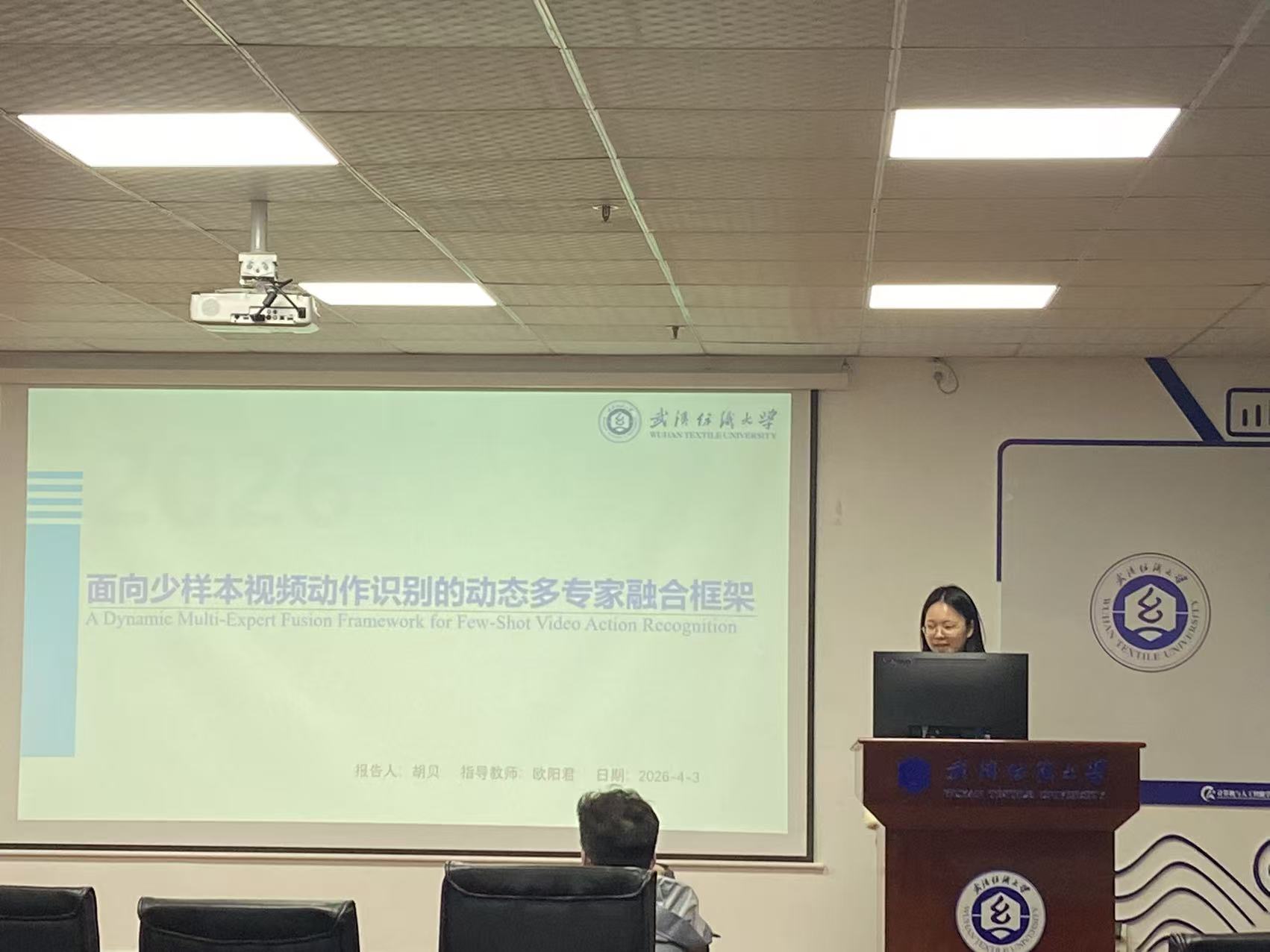 胡贝同学分享的主题为“A Dynamic Multi-Expert Fusion Framework for Few-Shot Video Action Recognition”。现有视觉语言模型常采用单一固化的时序建模范式,难以自适应地处理视频中变化多样的动态模式,制约了视频分析深度与泛化能力。为此,提出一种动态多专家融合框架(DynamicMulti-Expert Fusion Framework,DMEF)。该框架设计了一个自适应专家调度器,能根据输入视频的内容特性动态选择并融合三种不同粒度的时序建模专家:全局静态专家用于维持静态语义泛化能力,短程动态专家专注于捕捉局部帧间变化,长程上下文专家则建模全局时序依赖关系。实验结果表明,在少样本学习及跨域泛化任务上,DMEF方法在HMDB51、UCF101和SSv2数据集上均取得最优性能。