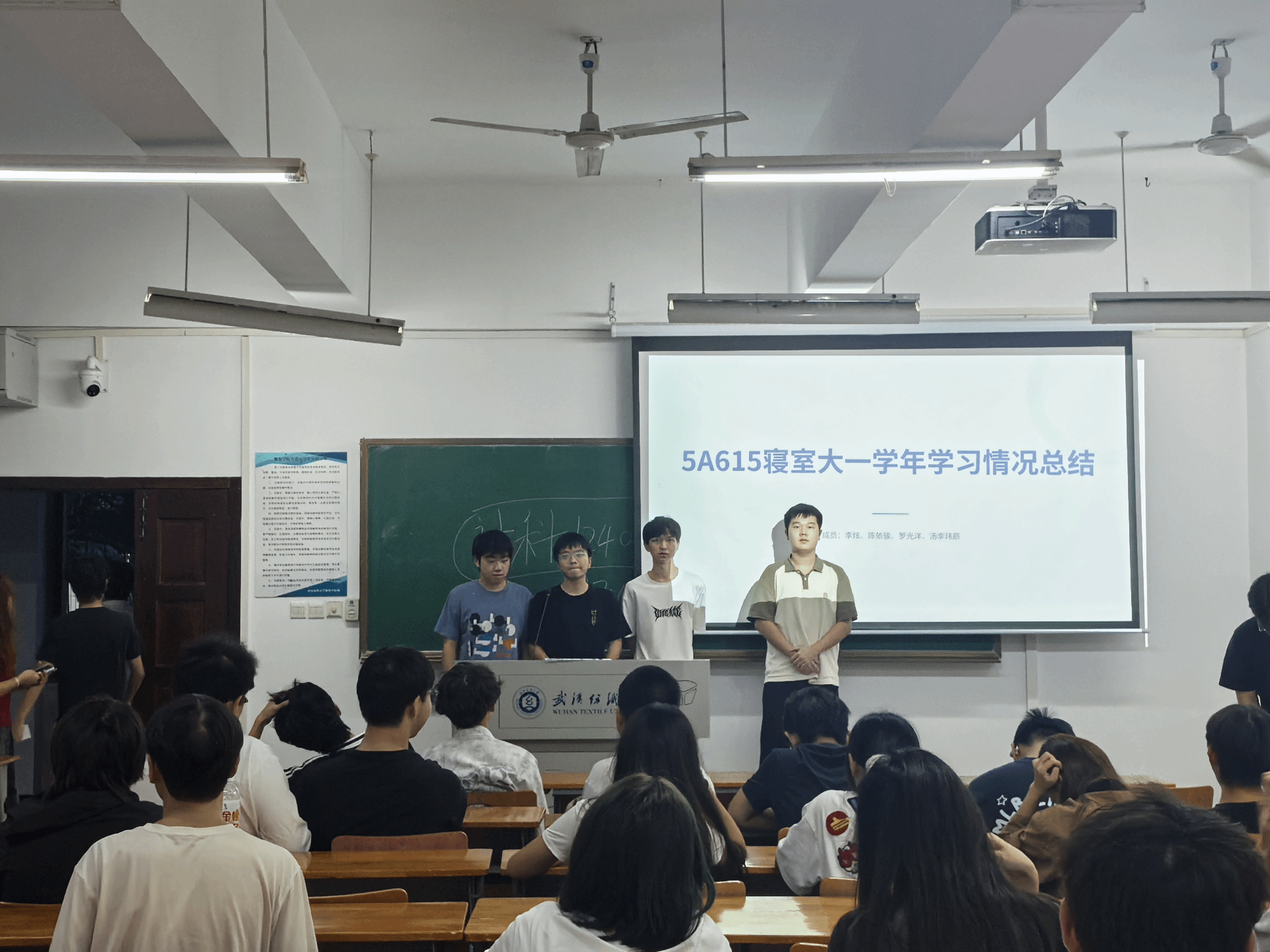 会议伊始,学习委员李炫简要介绍了总结会的目的与流程,强调通过回顾过往、交流经验,为班级新学期的整体进步奠定基础。随后,各寝室代表依次上台,结合PPT展示,围绕学习情况、生活管理、活动参与及未来计划等方面进行分享。