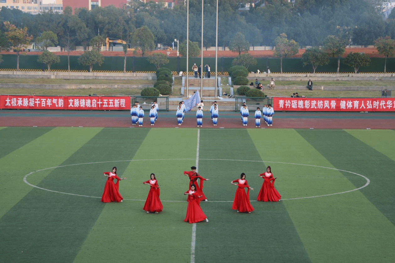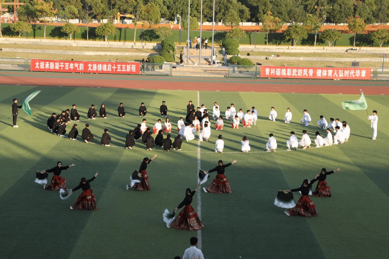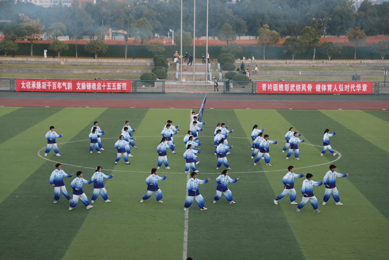 伴随古韵悠扬的琴音,各参赛队伍神采飞扬,意气风发。起势如松立峭壁,推手似水绕青山;动静之间,尽显刚柔之美;开合之中,暗含天地之道。队员们以整齐的队形、响亮的口号、创意的横幅,将青春的朝气与传统的意蕴完美相融,展现了太极拳在现代校园中的蓬勃生机。一招一式中,不仅是对身体与意志的锤炼,更是对中华优秀传统文化的深切认同与自觉传承。他们以拳寄意,以武传情,将“爱校荣校”的热忱,融入每一式流畅的动作之中,让太极拳这一非物质文化遗产,在纺大校园绽放时代光华。