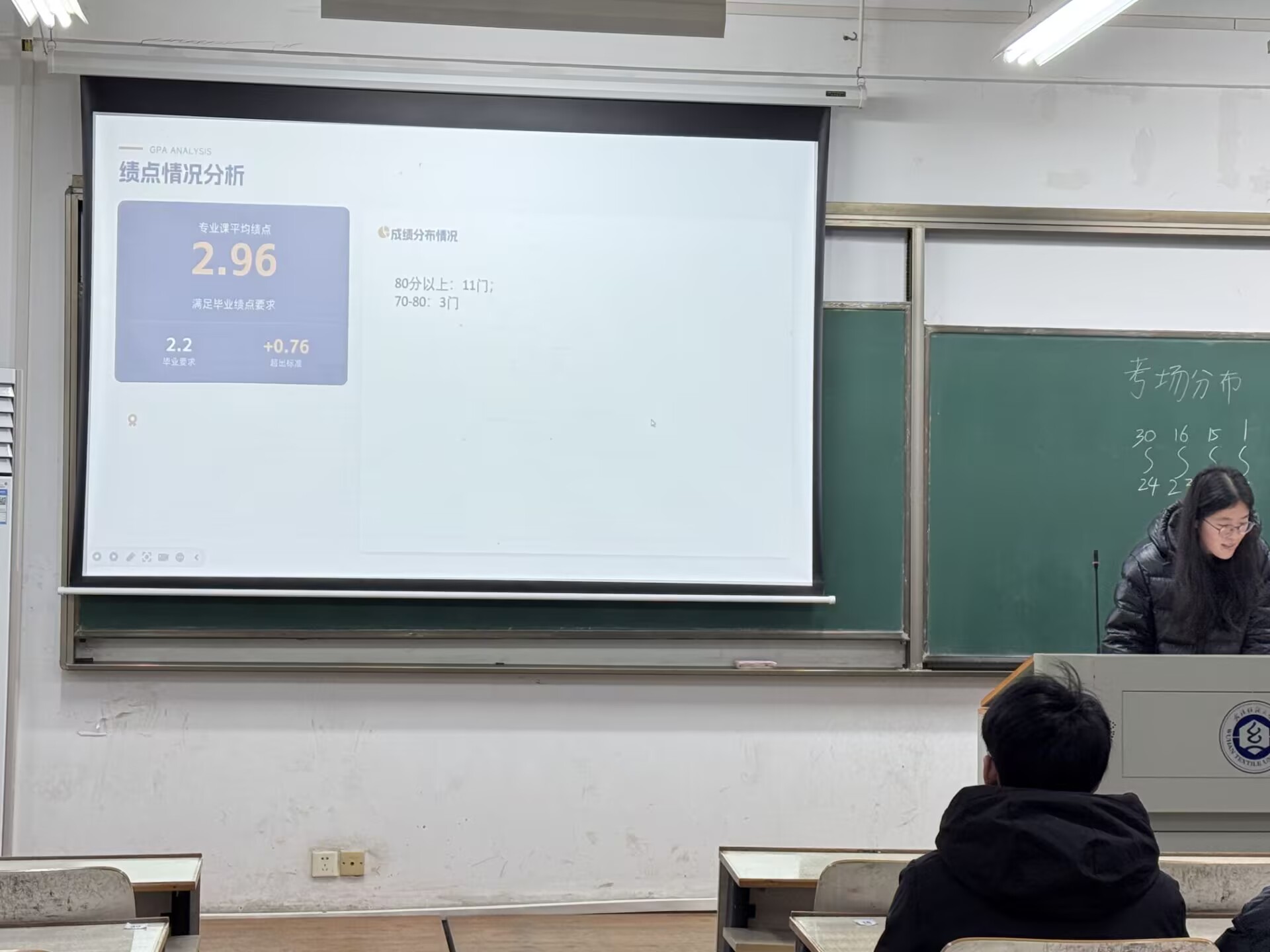 为全面复盘上学期学习成效,正视自身学习短板,明确新学期学习目标与改进方向,近日,物联网12401班召开学期总结主题班会。本次班会以个人复盘、自我反思、规划未来为核心,全班同学逐一展示个人总结PPT,坦诚分享上学期学习不足、挂科问题及新学期提升计划,班会由班长主持,全体同学共同参与,丁磊老师和辅导员李港老师参与指导,在务实自省的氛围中完成了一次深刻的学习总结与规划交流。