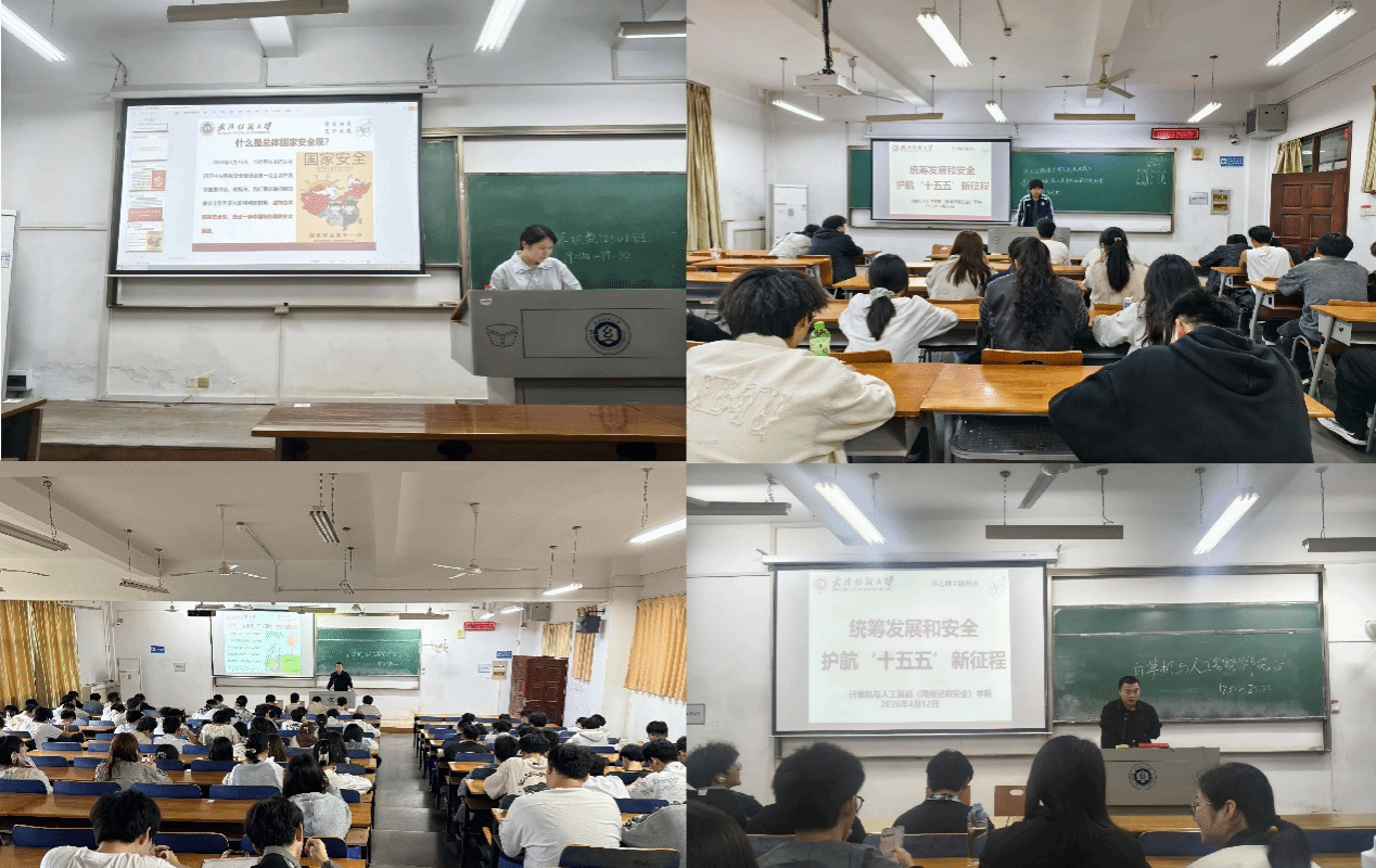 国安为基守初心,青年聚力护山河。为迎接第十一个全民国家安全教育日,深入贯彻总体国家安全观,全面提升学生国家安全意识与防护能力,4月12日,计算机与人工智能(网络空间安全)学院以班级为单位,组织开展“统筹发展和安全,护航‘十五五’新征程”主题班会,学院全体学生参与本次教育活动。