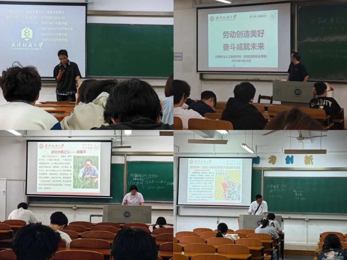 劳动铸华章,奋斗启新程。为迎接“五一”国际劳动节,厚植学生劳动情怀,弘扬劳模精神、劳动精神、工匠精神,引导青年学子树立正确劳动观,4月26日晚,开云kaiyun体育官方网站(网络空间安全学院)以班级为单位,召开“劳动创造美好,奋斗成就未来”主题班会。学院党委副书记向涛、全体辅导员及各年级学生共同参与,本次班会以劳动教育为核心,融合榜样引领与安全提醒,为同学们筑牢思想根基、护航假期平安。