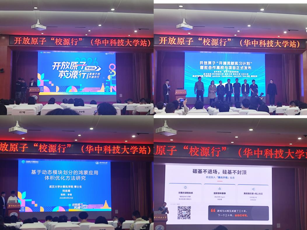 4月25日,由开放原子开源基金会主办的开放原子“校源行”华科站活动在华中科技大学学术交流服务中心成功举办。本次活动以“聚源于校,开源共建”为主题,汇聚了武汉多所高校师生、技术专家及行业精英。开放原子开源软件社团在指导老师柳正利老师的带领下,组织社团成员积极参与,与各校同仁共同探讨开源技术发展趋势,交流开源社区建设经验。
