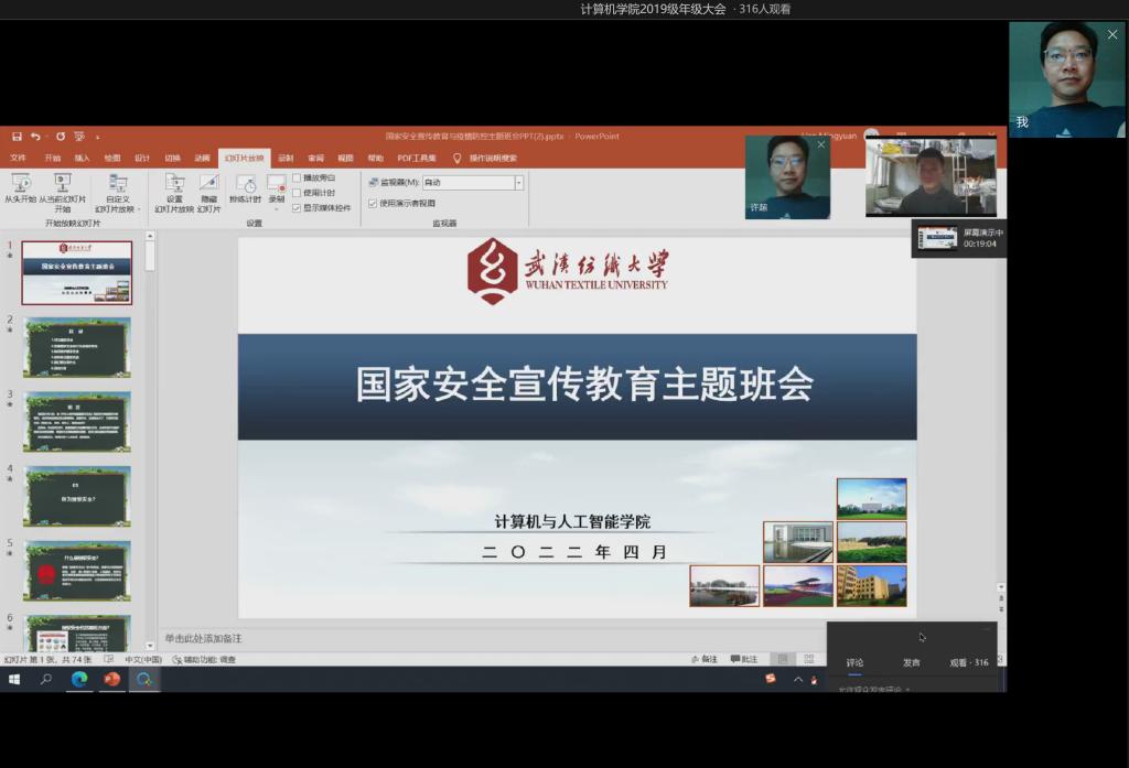 每年的4月15日,是“中华人民共和国国家安全法”规定的全民国家安全教育日。为推动社会主义现代化的建设,深入贯彻习近平新时代中国特色社会主义思想,加强同学们的安全意识,4月17日下午,开云kaiyun体育官方网站开展了“国家安全教育主题班会”活动,各年级辅导员、班主任及同学们积极参与,班会取得良好效果。