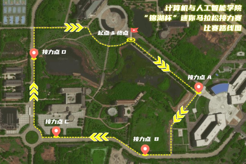本次比赛全程1.6km,比赛路线围绕阳光校区风景秀丽的锦湖设置,全程共设置4处接力点。得益于学校各部门的大力支持以及比赛沿线志愿者们的悉心照顾,师生才能无忧无虑在享受着阳光、美景与欢笑声的过程中恣意奔跑。