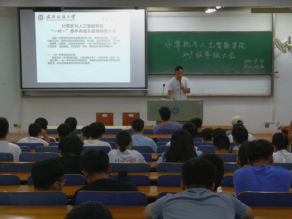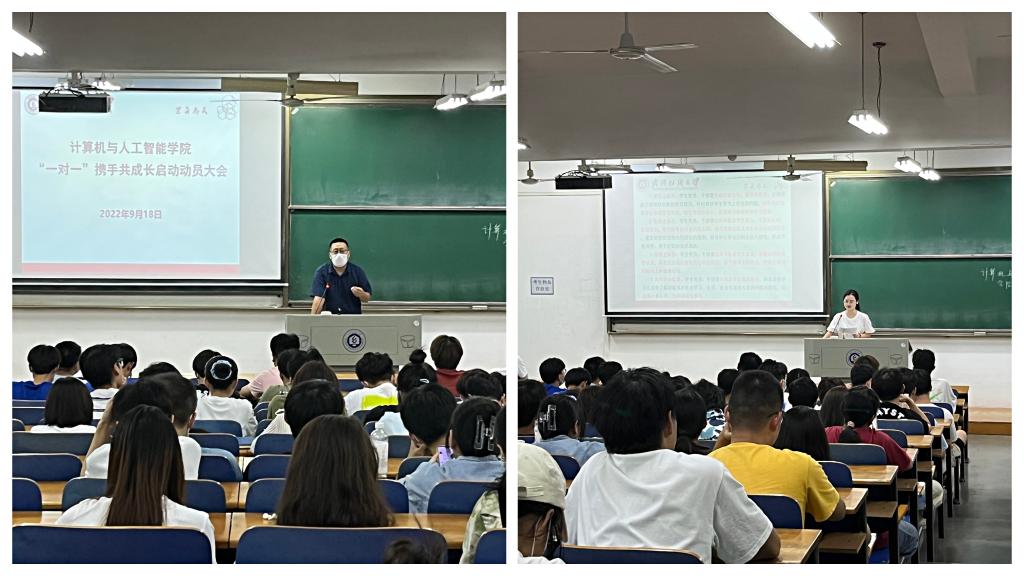 为进一步落实学校关于开展“一对一携手共成长工作”工作要求,推进常态化学生联系服务工作,调动学生党员、学生干部参与重点工作、服务身边同学的积极性、主动性,为同学办实事,办好事、解难事。9月18日班会晚点名时间,开云kaiyun体育官方网站在3号教学楼召开了“一对一”携手共成长启动动员大会。各年级分批次、分时段有序开展,学院党委副书记向涛、各年级辅导员及全体学生参会。