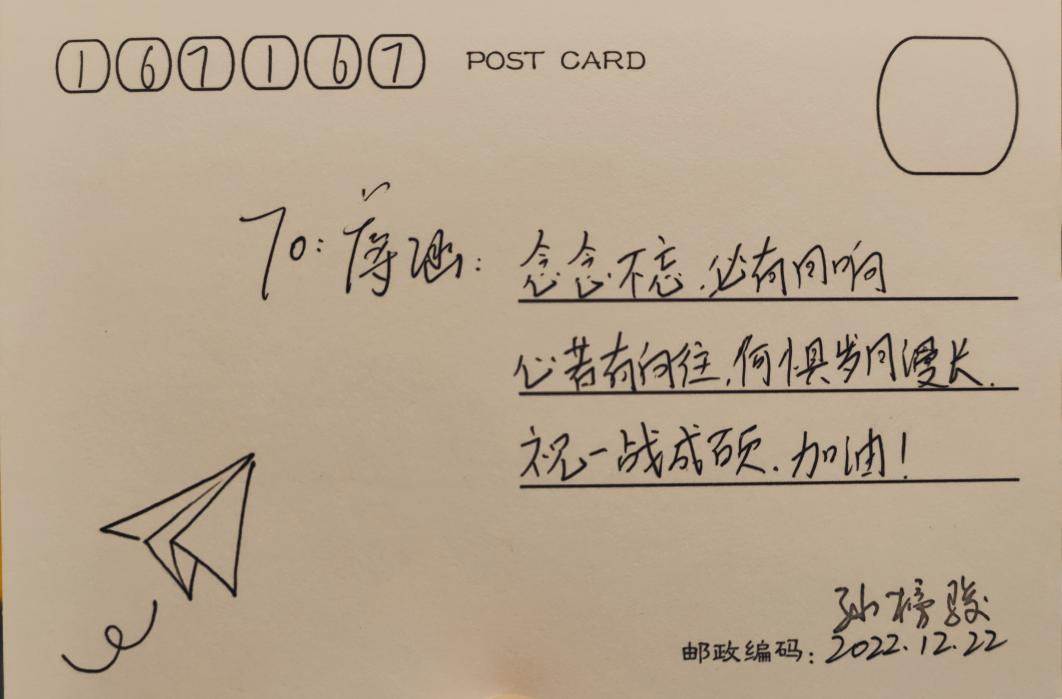 对于这份意外礼物,考研同学们也觉得十分的惊喜,同时也对学院老师的关心表达了感谢之情,并表示要带着学院老师们的祝福,铆足干劲、脚踏实地、迎难而上、争取佳绩、不负众望,为学院争光添彩。