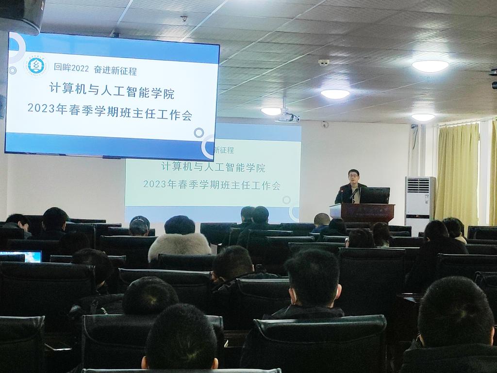 会上,晏伟带领全体教师回顾了上一年度学院学生工作的整体情况和取得的成绩,充分肯定了班主任老师的辛勤付出和努力成果。并结合学生工作中存在的问题,将新学期的新思路和新要求进行了充分交流。他指出开学第一周是考试周,希望全体班主任老师适时安排时间为同学们做考前辅导和答疑,进行学业帮扶,助力学生顺利考试。春季为心理问题高发期,提醒班主任多多关注学生心理健康,提供适宜的心理疏导。最后向涛就本周班会事项进行了强调,号召班主任组织开展好新学期的第一次班会,并鼓励班主任在班会上大力宣传学院2022年的十件大事,以此增强学生的专业认同感、学院归属感和学业自信感。