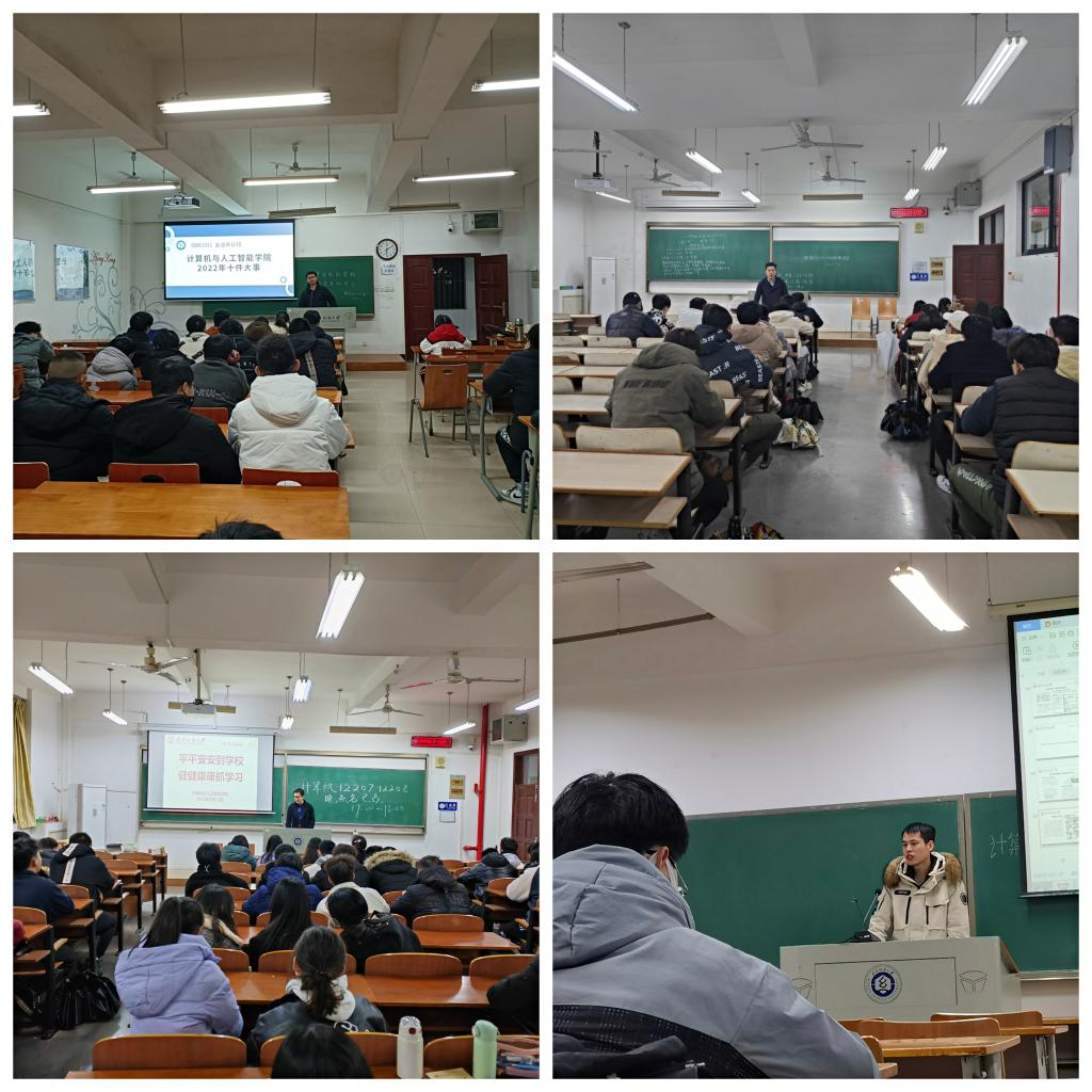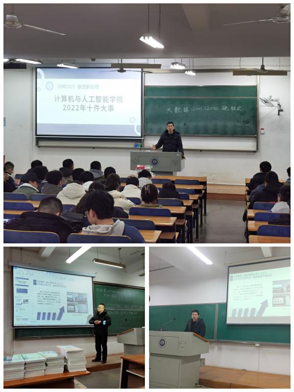 会上,班主任详细讲述了《开云kaiyun体育官方网站2022年十件大事》,指出2022年在学校党委行政的坚强领导下,学院全体师生抢抓机遇、奋发图强,在人才培养、科学研究、社会服务等方面取得一系列丰硕成果,学院获评学校2022年度考核优秀等次。鼓励同学们要结合不同学习阶段:大一适应、大二放飞、大三回归、大四选择、研途绽放,以时不我待的紧迫感、逆水行舟的危机感、舍我其谁的责任感,明确任务单、时间表、施工图,牢记空谈误国、实干兴邦,坚定信心、同心同德,埋头苦干、奋勇前进,以实际行动为建设“学生得到成长、教师得到发展、学科深度融合、社会高度认可”的美好学院而踔厉奋发!
