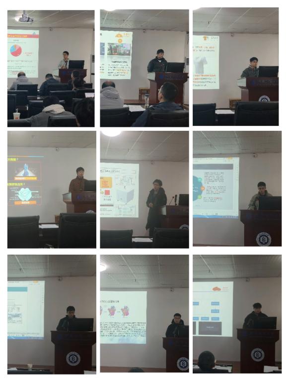 随后选拔赛在轻松活泼的氛围中有序进行,9支参赛团队按照顺序依次进行了展示答辩,分别从项目背景、项目简介、市场情况、核心技术及应用价值等方面进行了详细阐述。答辩结束后孙杰教授从资料的填报、支撑材料佐证、项目的创新之处和不足之处等方面进行了一一点评。选手们细心地听取了评委老师的宝贵意见,并对未来的发展路线作出了进一步的完善计划。