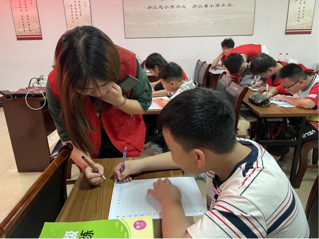 活动伊始,志愿者们热情地向同学们介绍了活动的内容与目的,强调了写一手好字的重要性,在同学们的期待中小老师讲解了练字的重点与每个字的笔顺,引导同学们握笔和写字姿势,纠正小朋友的错误,为小朋友们写好字打下了良好基础。