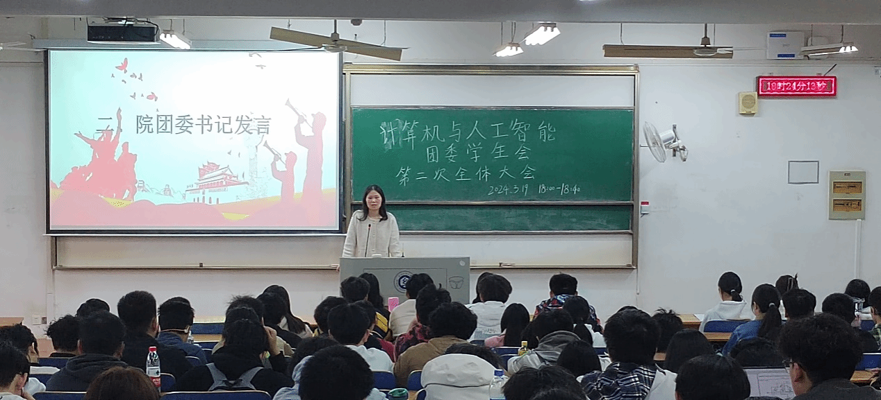 随后,学院团委书记喻仪上台发表了讲话。她就新学期工作进行指导,强调学院学生会成员不仅要对工作保持积极的热情,并且要全面提高个人的工作能力,规范部门的工作。易凡结合本学期工作任务和规划,提出了学院团委学生会例会制度,并再次强调了会议纪律。