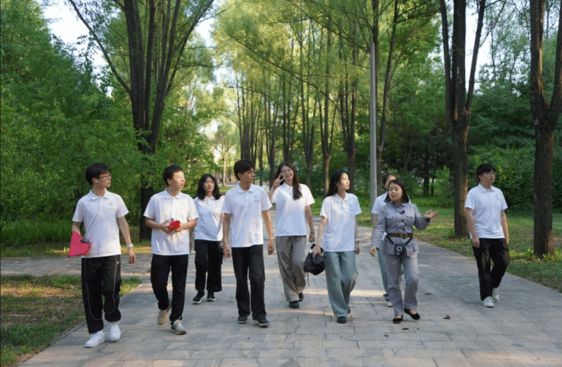 紧接着,实践团来到了八路军文化园。这里背靠凤凰山,东临马牧河,整个园区由前广场、胜利大道、军艺社、胜利坛、实景剧场以及八路村六部分组成。