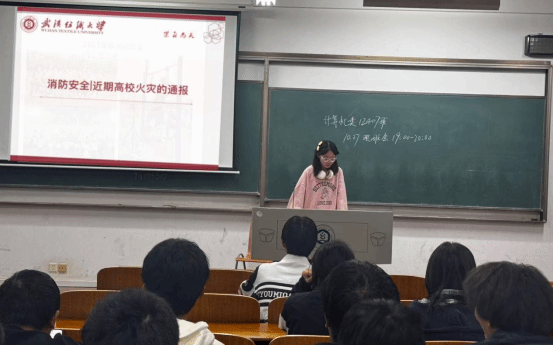 在安全方面。班会介绍了近期高校火灾案例,强调校园是人员密集场所,消防安全至关重要,并通过具体例子,讲解同学们应对火灾时的脱身技巧。最后,班会介绍了武汉纺织大学处理学术不端行为的办法,明确了学术不端的行为会带来的后果,提醒同学们在任何时候都要诚信应对。