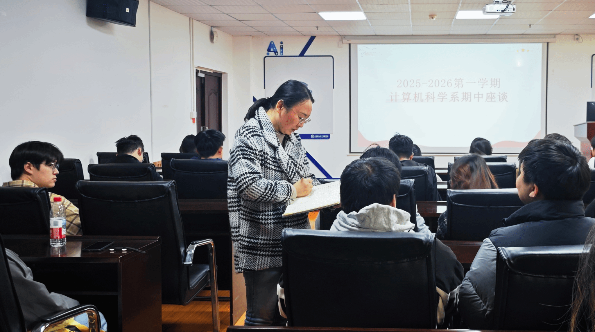11月27日下午,计算机科学系在崇真楼会议室顺利召开了2025-2026学年第一学期期中学生座谈会。系主任陈佳与刘天鹏老师共同出席了会议,与各年级学生代表进行了深入交流,广泛听取了同学们在校园学习与生活中遇到的实际问题与改进建议。