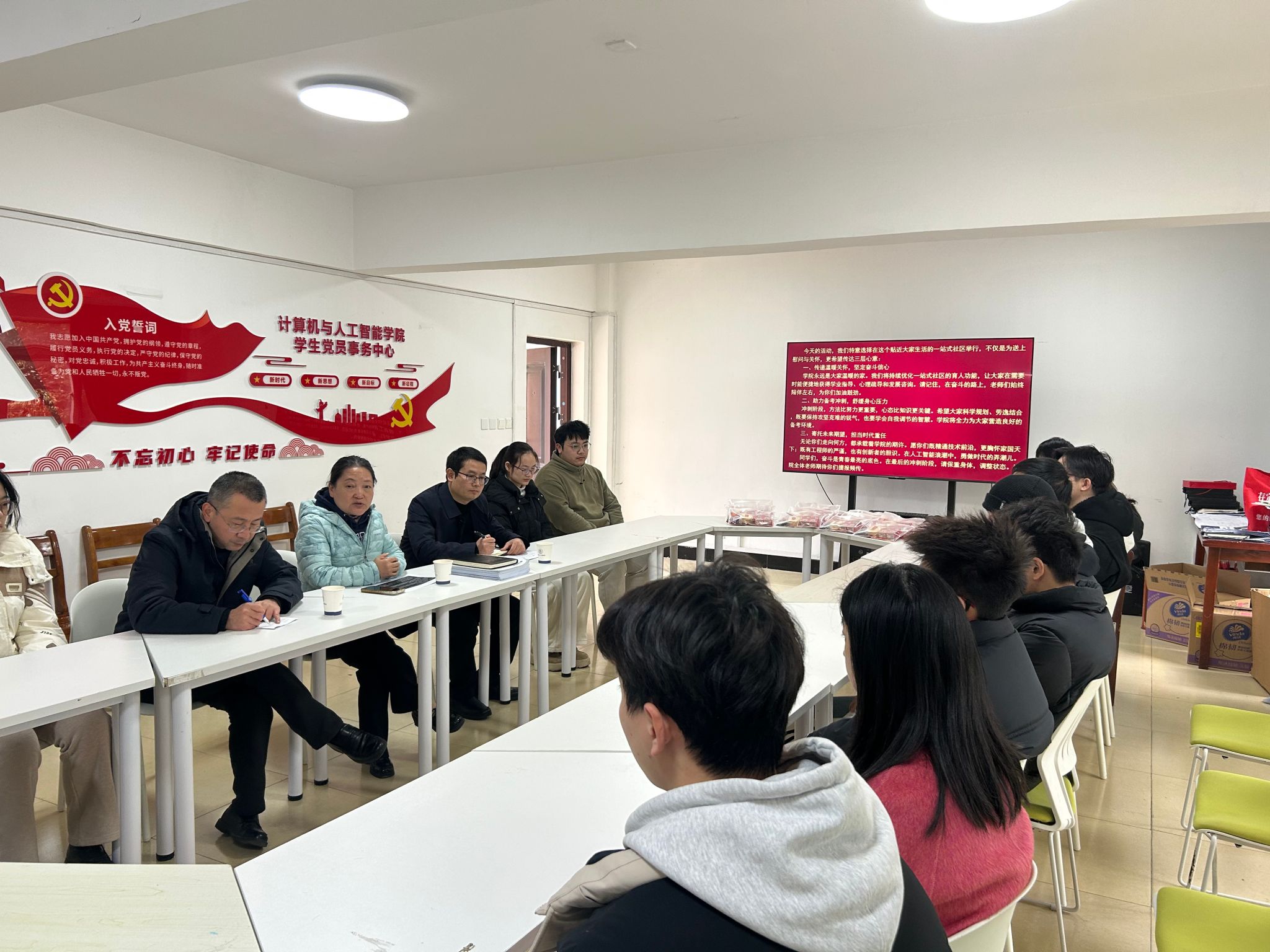 座谈交流环节,院领导认真倾听了学生代表关于备考进度、学习困惑及实际需求的发言,并逐一回应解答,为学子们答疑解惑、加油鼓劲。最后,院领导为学生发放精心准备的备考礼包,承载着学院对考研学子的鼓励支持。