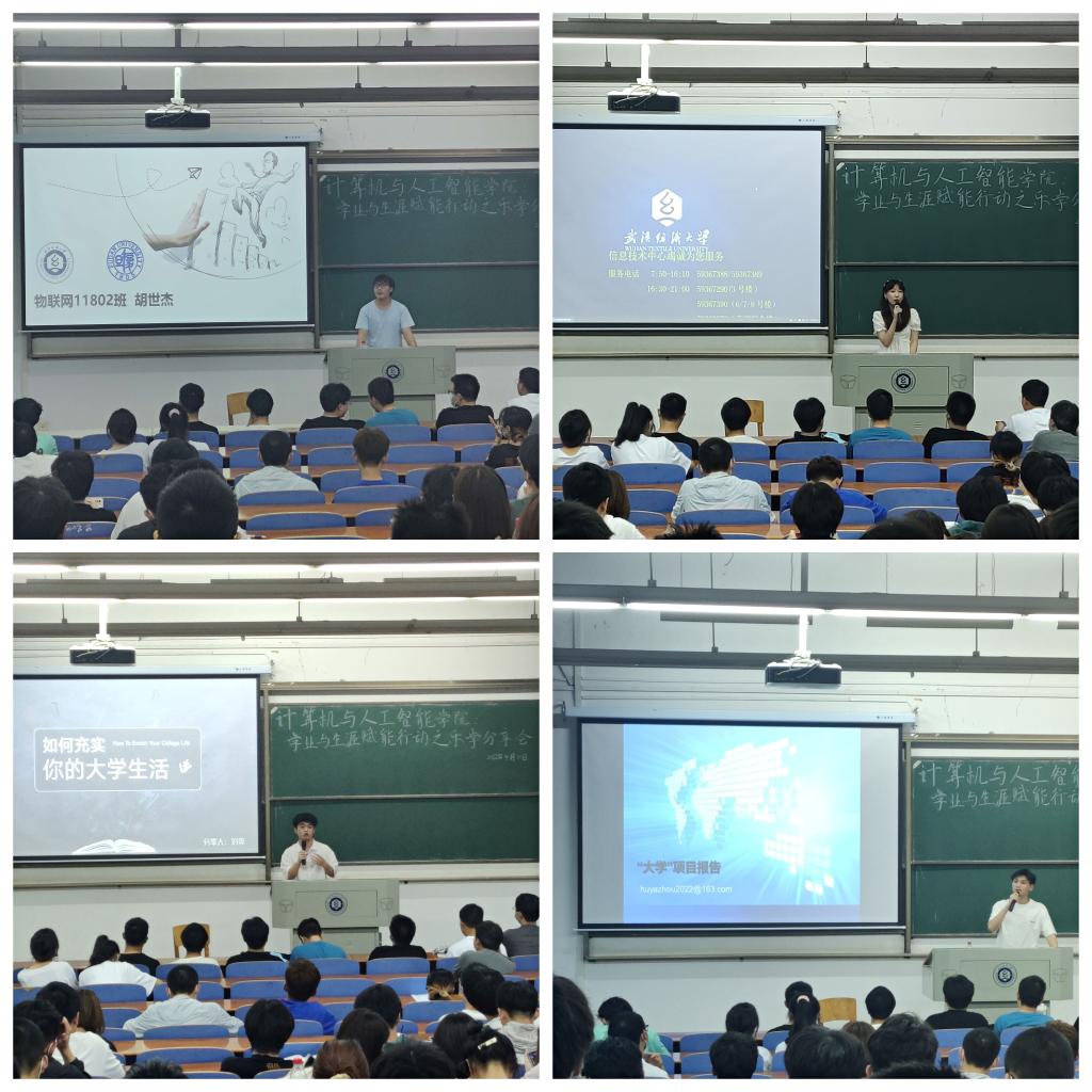 计科11803班考上华中师范大学的袁科向大家展示了他大学以来在学业方面取得的成就,并且给大家介绍了许多有用的学习资源与有效的学习方法,并告诉大家不要松懈,努力去提升自己,提早思考自己的未来,确定以后的方向,这样才不会迷茫。