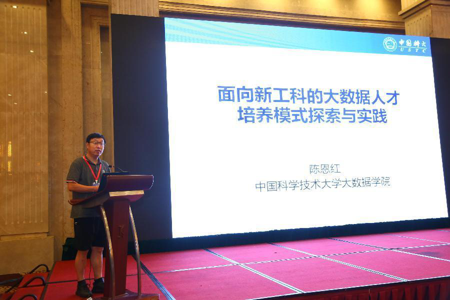 中国科学技术大学大数据学院执行院长陈恩红教授以《面向新工科的大数据人才培养模式探索与实践》为题作报告。陈院长介绍了国家大数据战略实施、数字经济发展和大数据专业人才培养等情况,分析了大数据专业人才所需具备的相关能力,介绍了中科大在大数据人才培养方面的相关实践与经验。