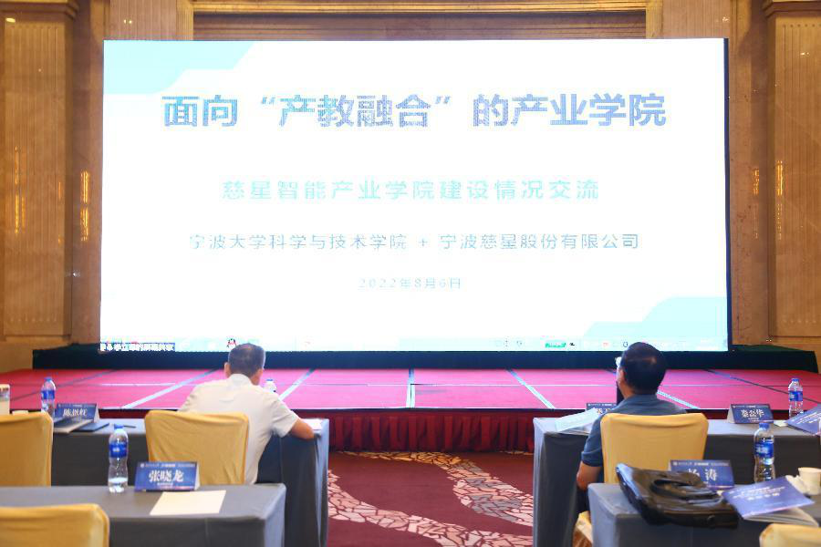 慈星股份董事李立军副总裁以《面向“产教融合”的产业学院——慈星智能产业学院建设情况交流》为题作报告。李总以宁波大学科学技术学院与宁波慈星股份股份有限公司共建的慈星智能产业学院的建设情况为例,介绍了普通高校建设面向“产教融合”产业学院的思路和途径。