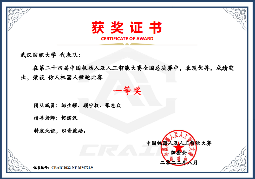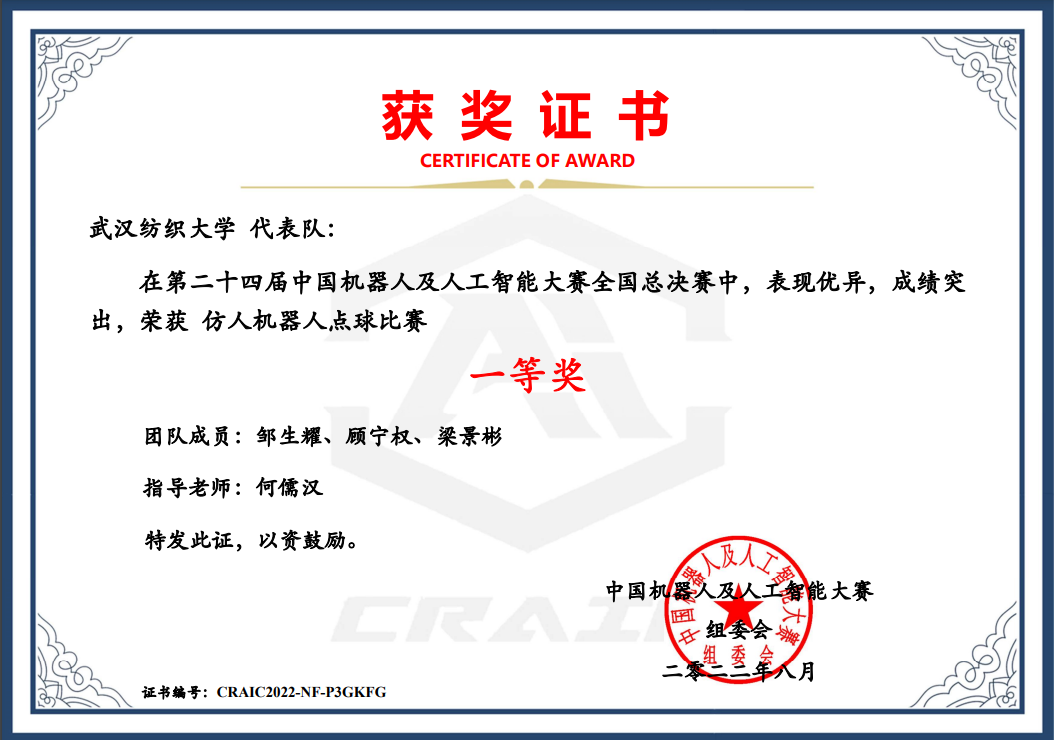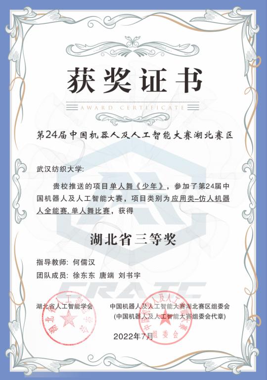 7月25日-29日,第24届中国机器人及人工智能大赛全国决赛成功举办。近日,大赛成绩公布,武汉纺织大学本次取得了两项全国一等奖,一项省级三等奖的好成绩。
