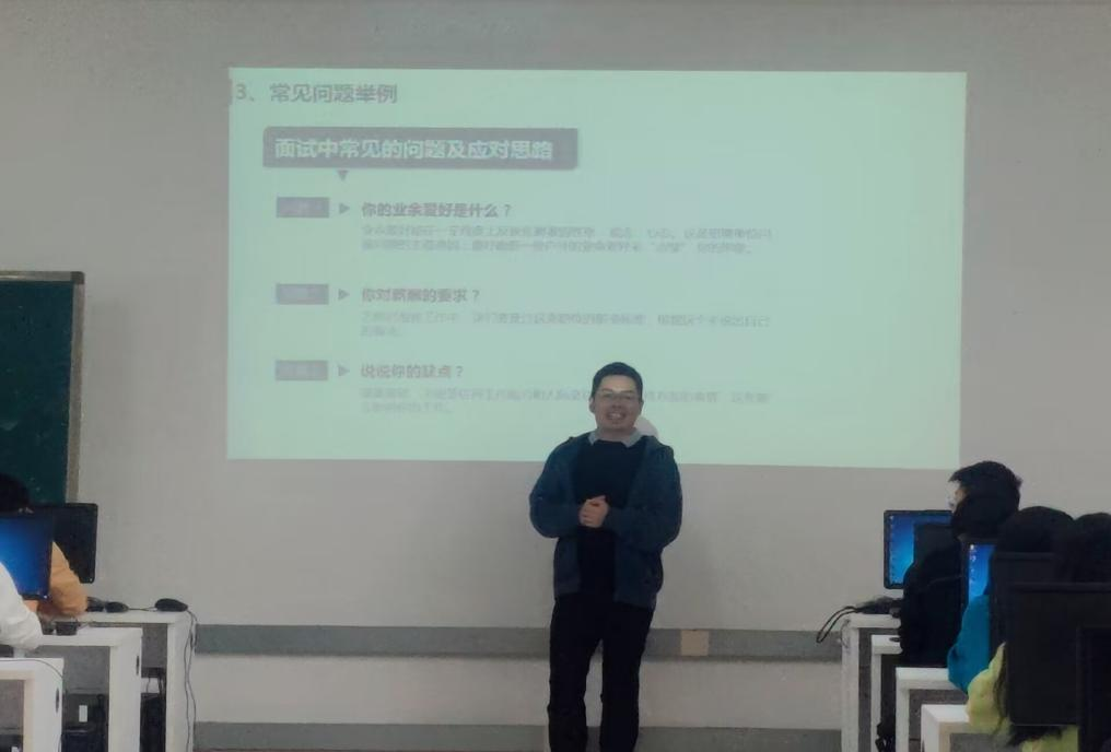 活动中,计算机系五位同学依次进行了分享。计算机12002班冯傲同学分享了基于解决施工场地人为监管安全帽佩戴情况难度高、易出纰漏问题的自主设计项目——安全帽检测,并分享了自己的开发流程及目前项目的不足。计算机12001班郭延冰同学介绍了利用动力学理论来揭示转录爆发机制的研究背景及其意义,并由转录爆发与潜在分子过程之间的脱节这一问题引出了内容的重点,即两态模型、协作绑定和速率限制模型。物联网12001班孙银涛同学分享了自己称之“不完美的”竞赛经验,建议同学们要通过专业优势和本身兴趣选择竞赛,要不惧失败、敢于尝试,更多的关注对于做项目过程中的所获而非结果,可以通过选择团队项目来弥补自身短板。计算机12002班王步宇同学分享了一个国内有关语义分割的框架,指明此项目与视频处理项目不同,它更侧重于图片的处理,试图借此项目制作出精美图片。物联网11902班姜恒同学结合自身面试经历分享了大学应届生面试技巧及注意事项,从面试前的准备工作、面试中的注意事项及面试通关技巧三个方面展开讨论