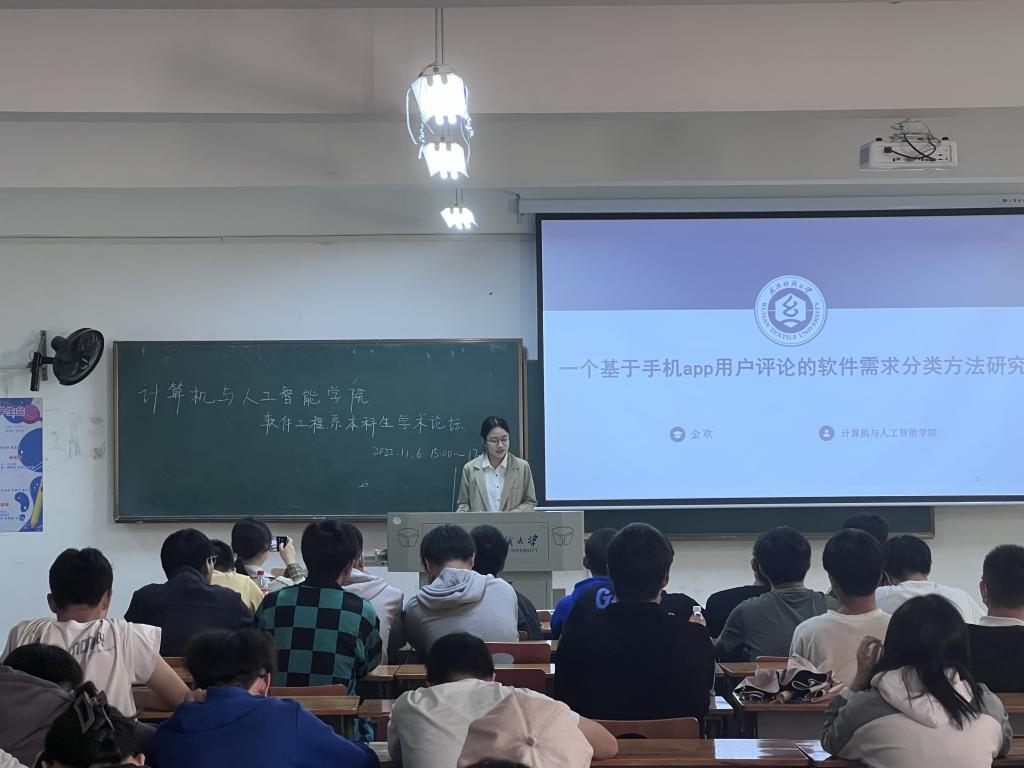 本次论坛邀请了2020级计算机系、软件工程系的两名同学分享自己的科研经验和科研成果。首先,软件工程12002班金欢向同学们分享了自己基于软件工程专业做的一项典型研究发表的论文——一个基于手机app用户评论的软件需求分类方法研究。她简要概括了其研究背景和意义,研究过程中有效评论数据的提取、分类、呈现等方法,并阐述了本研究的贡献及对未来工作的展望。软件工程12002班程靖尧向同学们分享了申请软著的经历经验,详细讲解了从零开始申报软著的具体流程及注意事项,他从软著的含义和申报所需材料两方面进行论述,指明申报的基础是先有自己编写的app,并鼓励同学们要及早准备,提前谋划。最后梁金星分别对两位同学的分享进行了总结,并解答了同学们的疑问。谢瑞清就近期开展的奖助学金的评定工作进行了讲解、总结,并借此机会进行了资助育人教育,鼓舞同学们心怀感恩、刻苦学习。