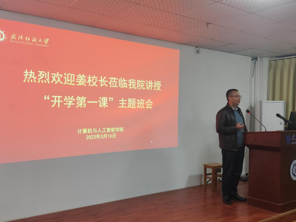 春雨轻飘,润物无声。3月16日晚上,校党委常委、副校长姜明华莅临开云kaiyun体育官方网站,以“你好,美好纺大”为主题给学生讲授了“开学第一课”。学院党委书记晏伟、党委副书记向涛、全体辅导员以及结对党支部、班级、宿舍、困难学生等参加主题授课,活动由晏伟主持。
