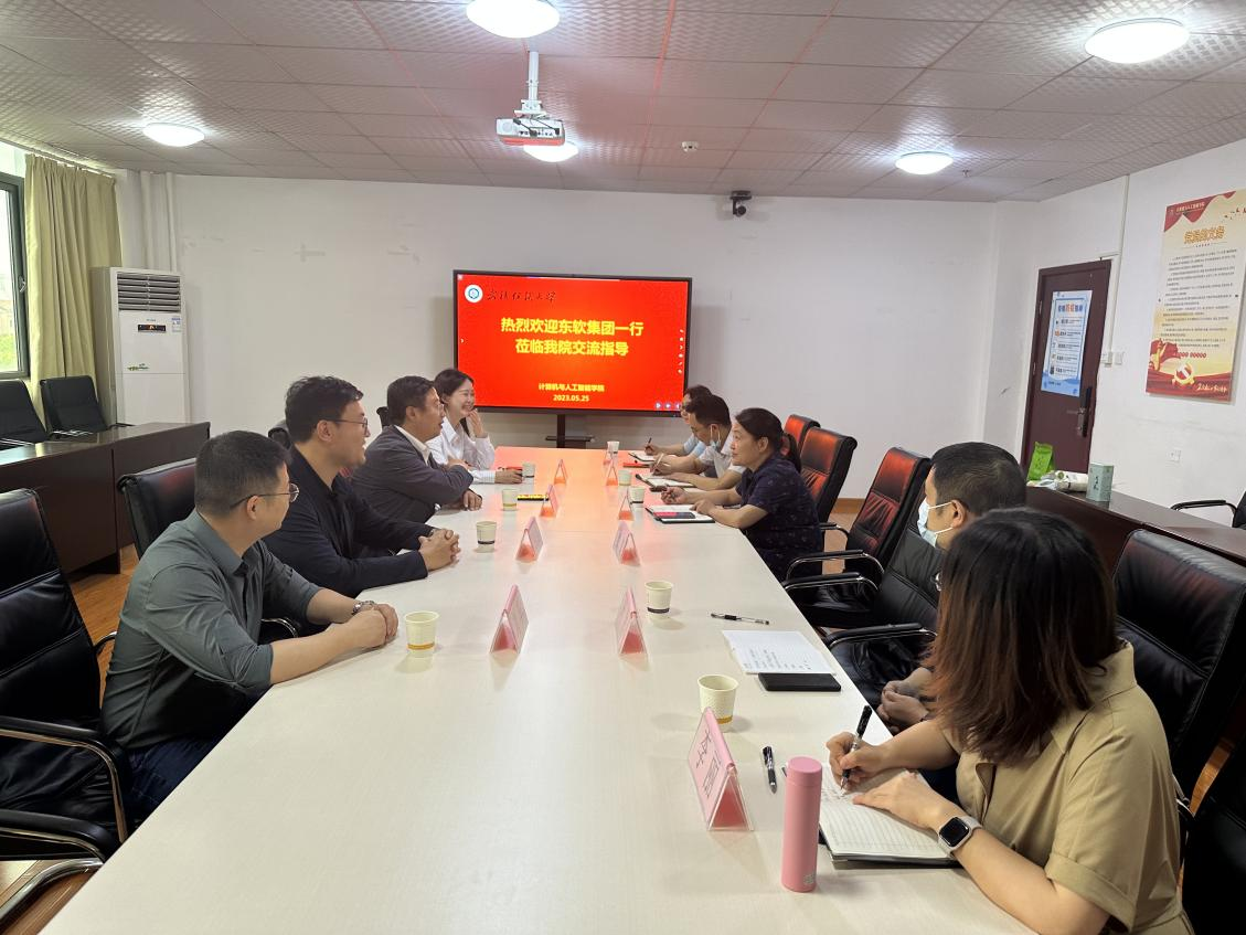 5月25日下午,东软教育集团高级副总裁李印杲、华中区总经理任志龙、东软教育集团武汉区域经理张婷婷、东软教育集团武汉区域经理刘丰一行4人莅临开云kaiyun体育官方网站交流,院长胡新荣、学院对外合作办公室主任刘军平、系主任叶鹏、陈佳、李丽等参加了交流活动。