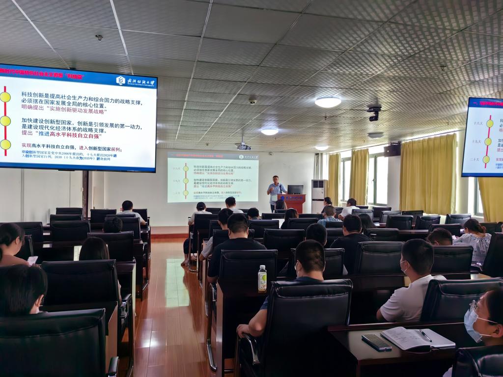 晏伟围绕习近平新时代中国特色社会主义思想关于科技的重要论述,以学院“科研强院”的实践为重点内容,思考学院科研工作如何服务学院高质量发展。晏伟指出,党的十八大明确提出“实施创新驱动发展战略”,党的十九大提出“推进高水平科技自立自强”,党的二十大提出“实现高水平科技自立自强,进入创新型国家前列”,其中党的二十大报告中“科技”一词出现44次,晏伟从现状、形势、目标、理念、路径以及任务等方面详细解读了二十大报告中关于“科技”的主要关键内容。
