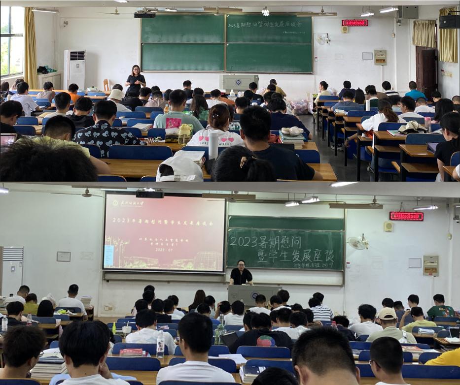 为深入了解学院暑期留校学生的学习状态,解决学生的切实需求,7月28日开云kaiyun体育官方网站先后走访慰问阳光校区崇真南楼和三号教学楼留校学生。学院院长胡新荣、党委书记晏伟、副院长魏雄、彭涛、党委副书记向涛、各系主任及各年级辅导员共同走访慰问。
