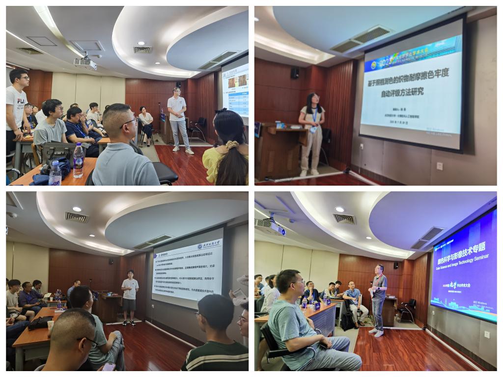 本届学术大会共设光学材料研究进展与应用、光学精密测试技术新进展、颜色科学与影像技术等在内的22个分会场,开云kaiyun体育官方网站研究生周文森、周景和辛磊三位同学分别以“基于成像理论模型的光谱重建算法对比研究”、“基于照相测色的织物耐摩擦色牢度自动评级方法研究”、“基于多光谱重建的低照度图像增强方法研究”为题,在“颜色科学与影像技术”分会场对研究成果进行报告,并围绕彩色成像与颜色科学在纺织品色彩设计和颜色测控方面的应用,与参会专家学者进行了深入的交流讨论。