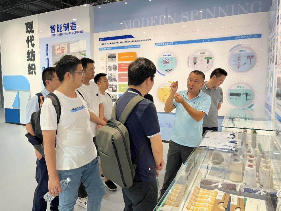 随后,晏伟带领校友们参观了学校纺织科技馆,从纺织缘、传统纺织、现代纺织、大纺织、超纺织和未来纺织六个版块讲述学校的纺织发展史、纺织科技的发展、纺织文化以及未来发展。校友们纷纷感慨母校日新月异的发展和变化。