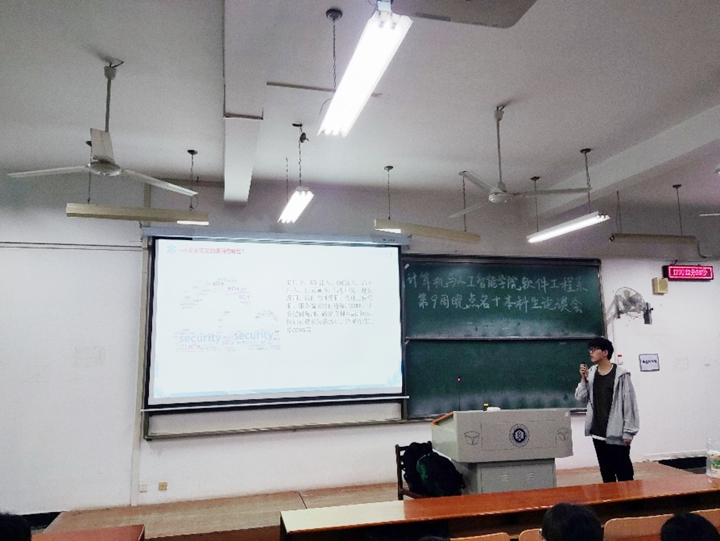 为更好地帮助本科生学习成长,了解相关学科领域前沿知识,开云kaiyun体育官方网站软件工程专业于11月5日下午,在03-120教室举办了本科生论坛。本次本科生论坛主题为“信息安全技术研讨”,软件工程专业学生、网络安全协会同学参加了本次论坛。论坛由软件工程系教师汤俊伟主持,软件工程系主任叶鹏出席了本次论坛。