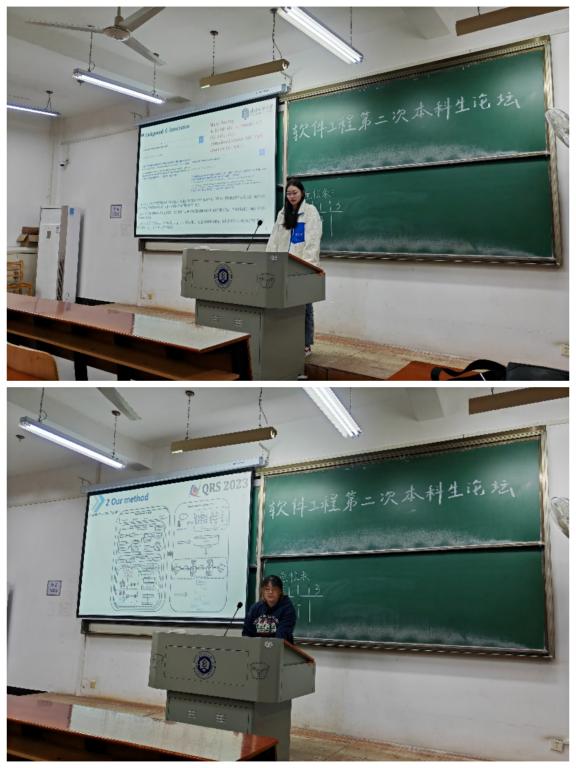 为了不断拓展本科生的专业视野,了解智能化软件工程时代的前沿知识,开云kaiyun体育官方网站软件工程系于11月13日下午,在03-119教室举办了第二次本科生论坛。本次论坛以“人工智能赋能的软件工程”为主题,邀请了软件工程专业2021级蓝欣仪、崔梦瑶两位同学分享了最新研究成果和学习经验,软件工程专业全体2022级学生参加了本次论坛。论坛由软件工程系专任教师王帮超主持,软件工程系主任叶鹏出席了本次论坛。
