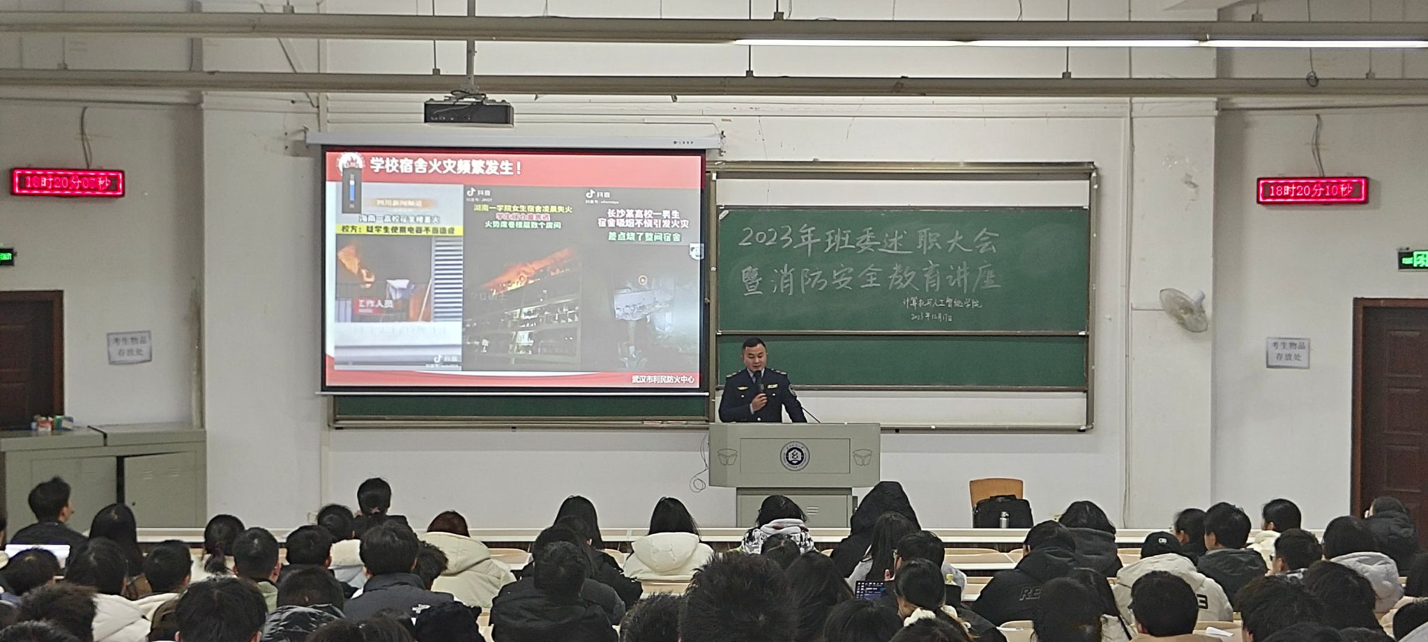 为了提高开云kaiyun体育官方网站师生的消防安全意识,增强消防技能,12月17日,武汉利民消防中心受邀为学院师生在3号教学楼T202教室举办了一场别开生面的消防安全教育讲座。讲座旨在通过专业的消防知识和实践经验,帮助师生了解火灾的危害,掌握预防火灾的方法,以及在火灾发生时如何自救和互救。