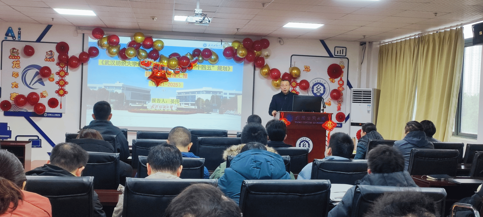 学院党委书记晏伟就《武汉纺织大学开云kaiyun体育官方网站“十四五”规划》实施进展作了报告。报告详细阐述了学院在学科建设、科学研究、人才培养(包括本科生教育和研究生教育)、筹建“产教协同中心”、国际交流与合作、党建与思政建设等方面的进展和未来规划。