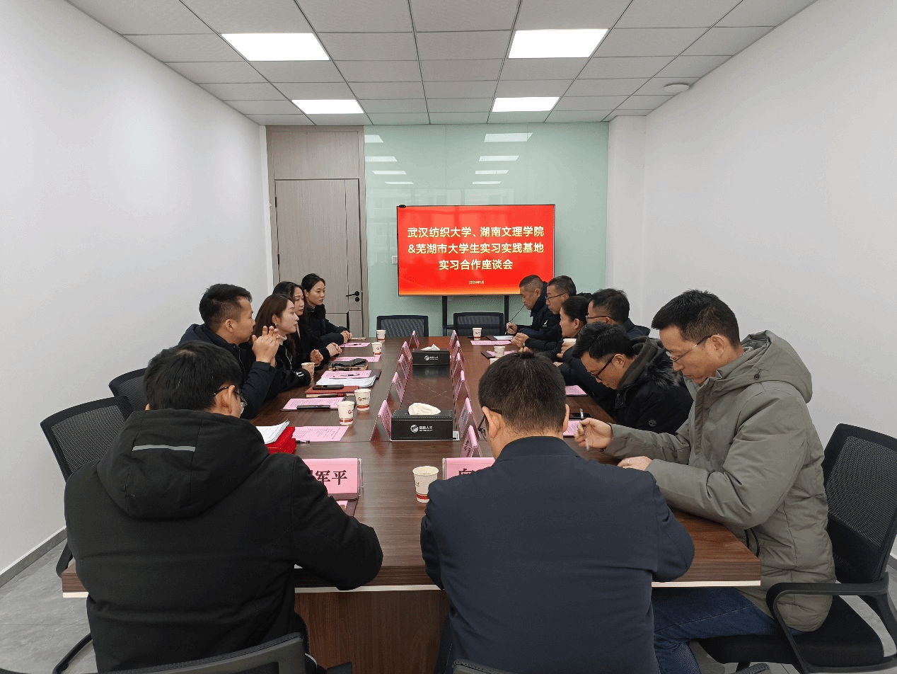 结束基地参观后,学院一行与大学生实习实践基地负责团队进行了座谈会。会上,基地负责人胡燕向与会人员介绍了芜湖产业布局、人才引进政策以及基地建设的宗旨与举措。胡新荣、晏伟向与会人员介绍了学校的情况以及学院的人才培养思路。希望通过合作,引入外部优质教育资源,探索人才培养新模式,加强学院学生培养质量,提高学生就业率。双方还就学生实习实践过程中的细节进行了深入交流。