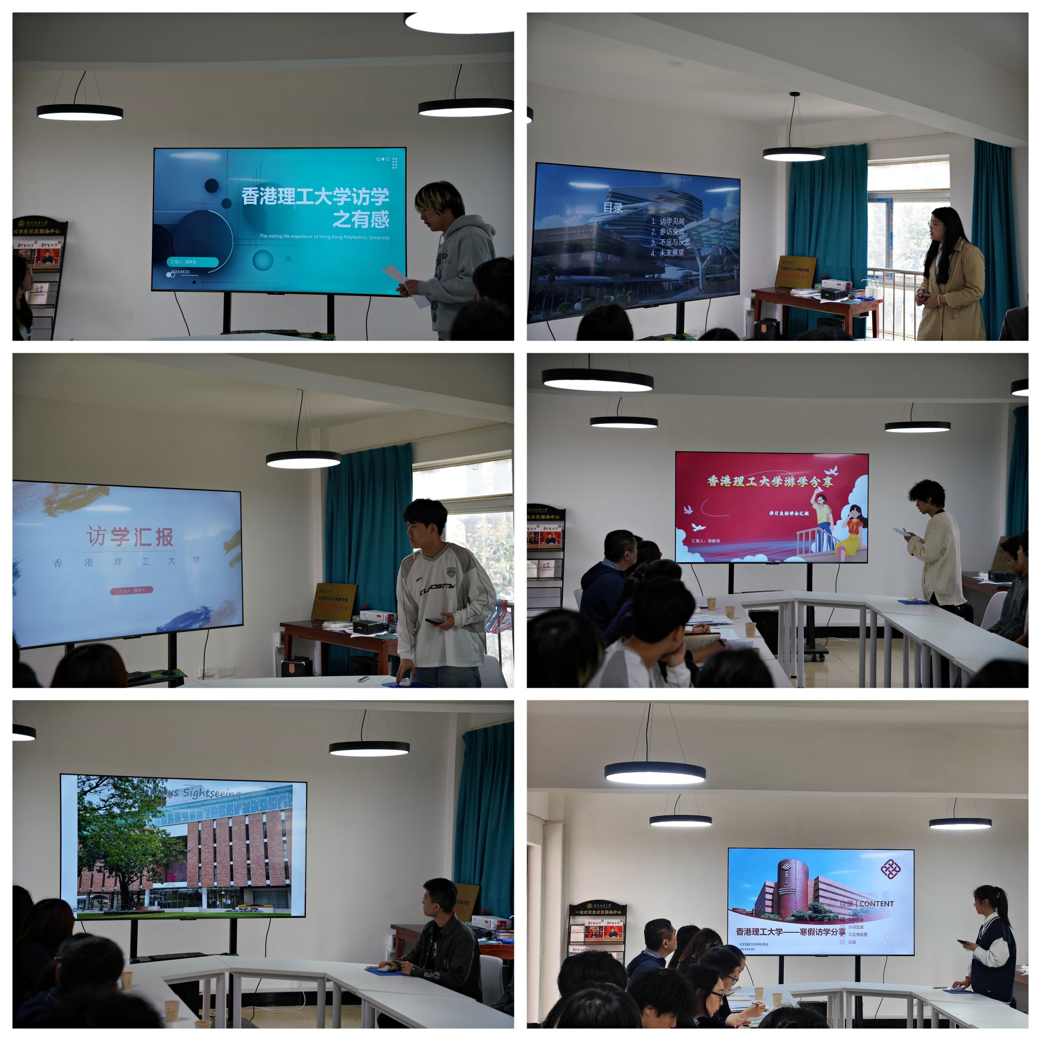 魏雄致开场词,强调了留学访学的重要意义,并鼓励同学们积极面对留学过程中可能遇到的挑战。随后,寒假期间前往香港理工大学进行短期交流的学生饶忠睿、邹毅恒、张鸿飞、张淑媛、吴梦龙、蔡凌等6位同学分别分享了自己的访学见闻和体会。他们详细介绍了在香港理工大学的学习经历、文化交流以及生活感悟,为在场的师生提供了宝贵的信息资源和深刻见解。在现场提问环节,与会学生积极提问,与访学学生进行了面对面的深入交流。