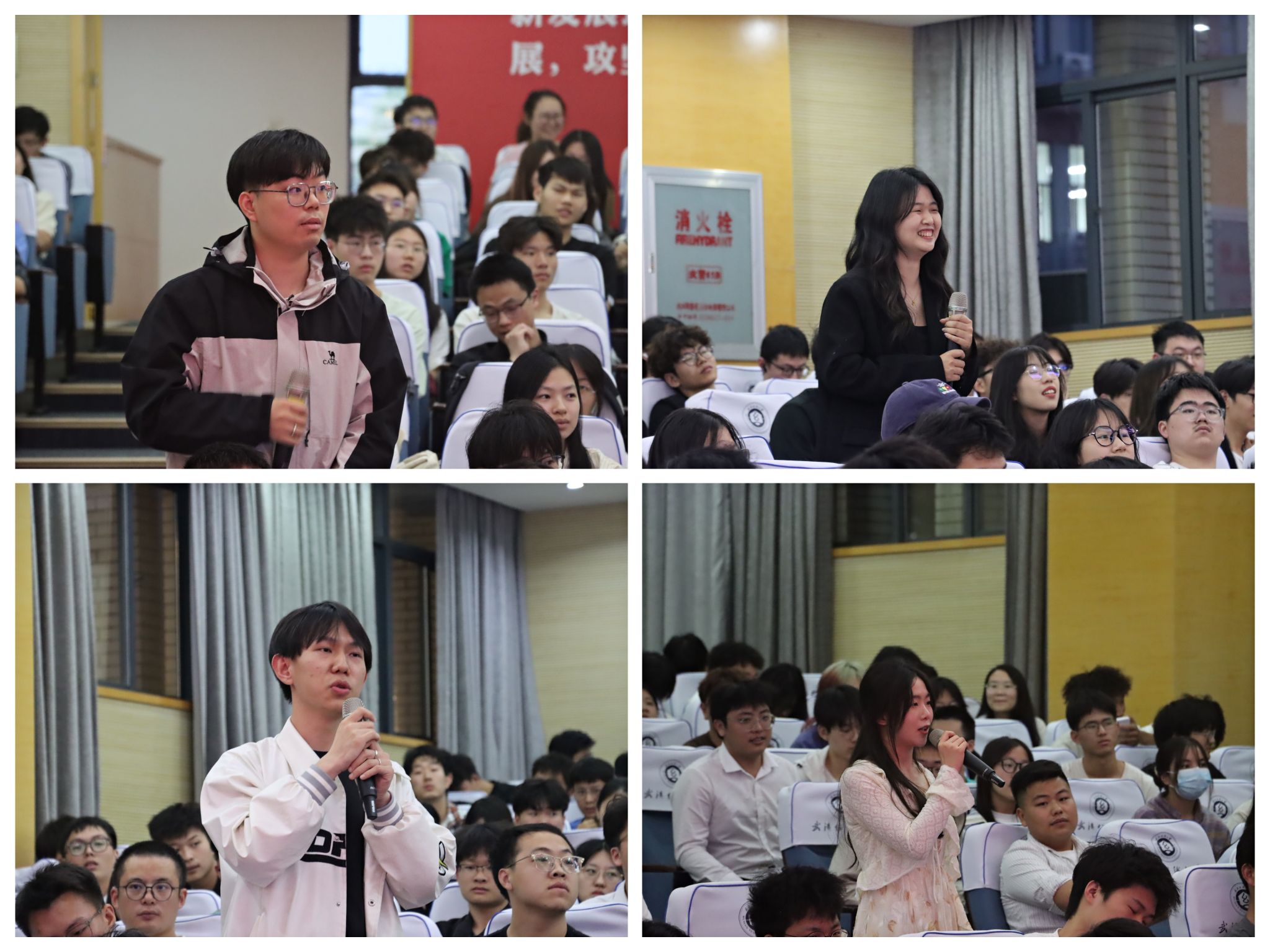 在“你问我答”环节,学生对“如何看待为了考研从低年级起就只关注考研课程而忽视其他”的问题向徐卫林提问。“无论考研、读博,未来都要适应社会岗位需求,具备解决复杂工程问题的能力,成为具有一定创新能力的人”。徐卫林告诫青年学子要根据国家和社会发展需要,充分发挥专业特长,再结合自身特点等综合考虑,做出合理的自身发展道路。“人生的价值不在于给自己留下了什么,而是给别人带去了什么;我们做一件事,‘做了’和‘做好’天差地别。”徐卫林深情寄语师生代表,现场问答既温暖人心又振奋精神。