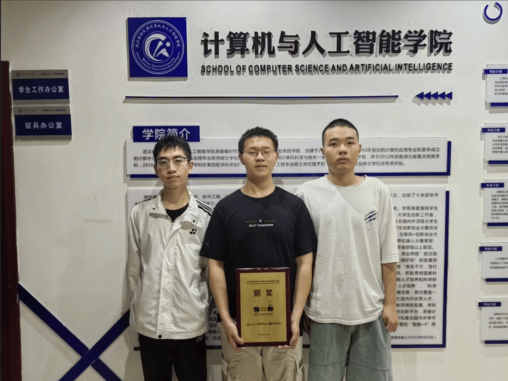 4月26日至27日,由学院1024工作室ACM俱乐部指导老师张自力和彭涛指导的五支参赛队伍参加了第49届ICPC国际大学生程序设计竞赛湖北省赛,最终夺得一枚银牌和两枚铜牌。三支队伍的队员分别是我院计科专业2022级蒋沈浩、苏宇曦、胡劲睿(队伍名:因为太怕爆零就全交暴力了),计科专业2022级刘洋以及人工智能专业2022级裘贺宝和周黄灏(队伍名:我的青春AC物语果然没有恋爱),与人工智能2021级谢飞、计算机类2023级学生孔浩杰和林舒乐(队伍名:别质疑我们了好吗好的乖摸摸头)。