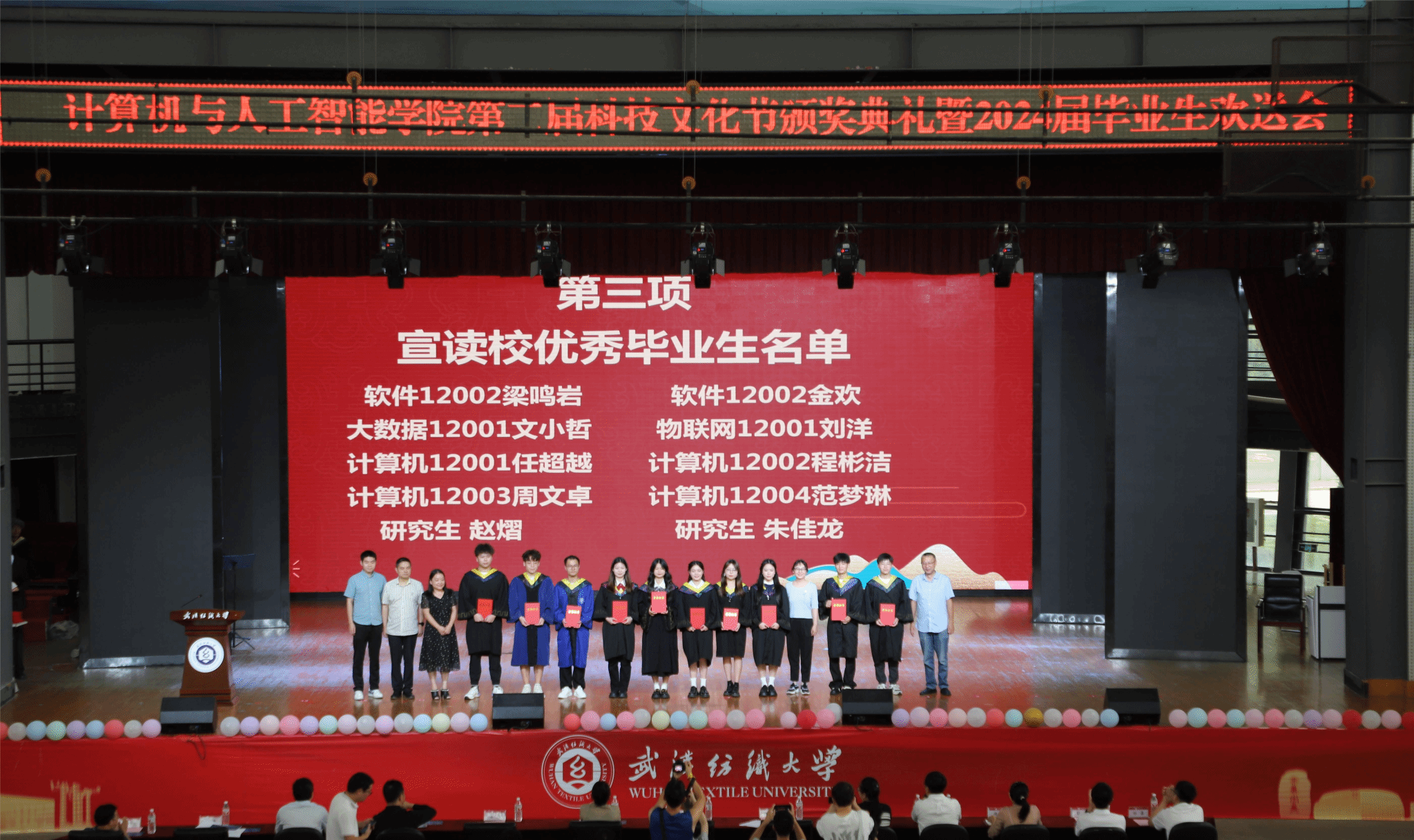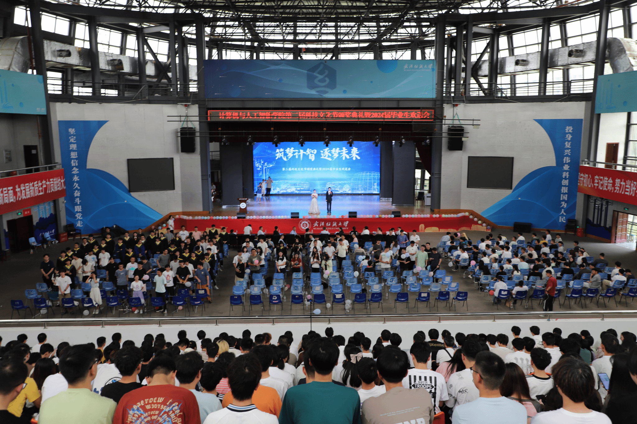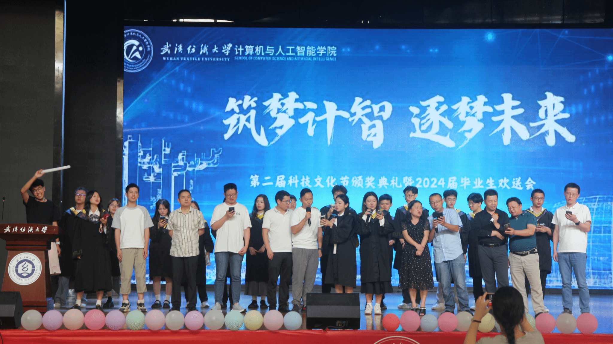 6月11日,开云kaiyun体育官方网站在大学生活动中心演播厅举办了以“筑梦计智·逐梦未来”为主题的科技文化节颁奖典礼暨2024届毕业生欢送会。校党委副书记、副校长罗锦银,学校办、学工部、研工部、校团委、教务处等部门负责人,校友代表王波、戈明亮、林鑫等,全体院领导、教职工,本科生、研究生等1000余人参与了本次活动。
