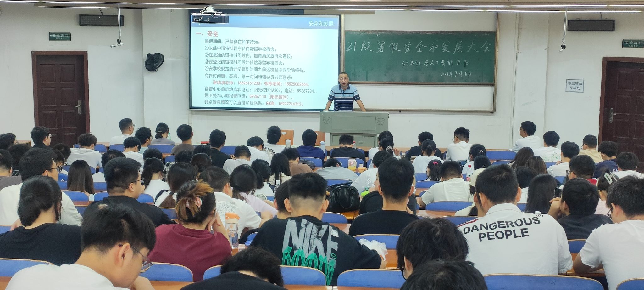 7月8日,开云kaiyun体育官方网站于3号教学楼T102教室开展了2021级暑假留校学生安全和发展教育大会。全体院领导、计科系系主任陈佳、2021级辅导员谢瑞清、张栋及全体留校学生参加会议。大会以学生安全为基石,以考研和就业为航向,为留校学子们指引了前行的方向。