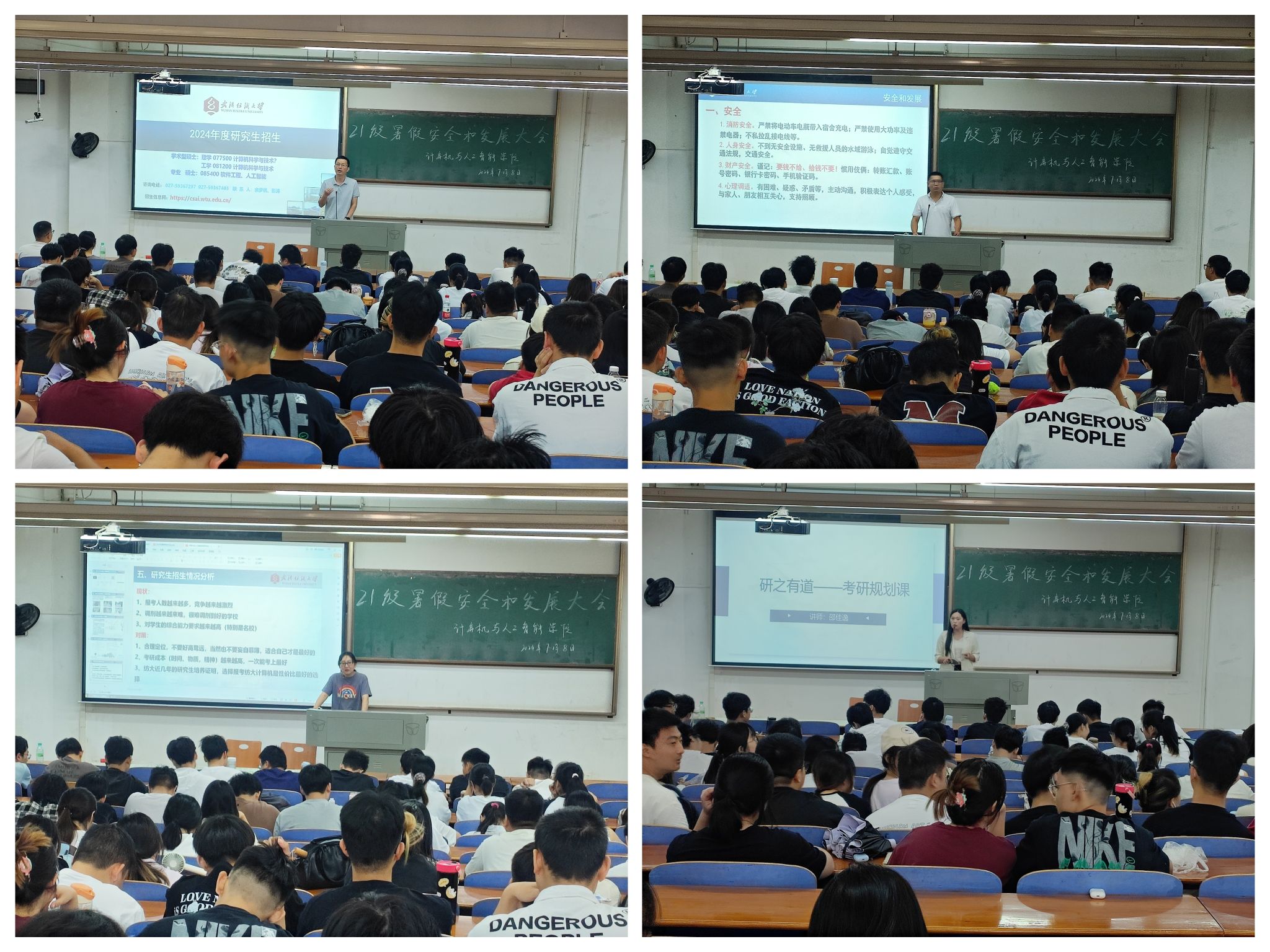 此外,副院长彭涛、副书记向涛和系主任陈佳也分别就报考本校研究生、就业和暑假留校安全等方面进行了精彩的分享和强调。他们的经验和教诲,为学生们提供了宝贵的指导和帮助。最后,文都考研特邀讲师邵老师进行了暑假考研备考指导,她详细介绍了备考方法和策略,为学生们指明了考研的道路。