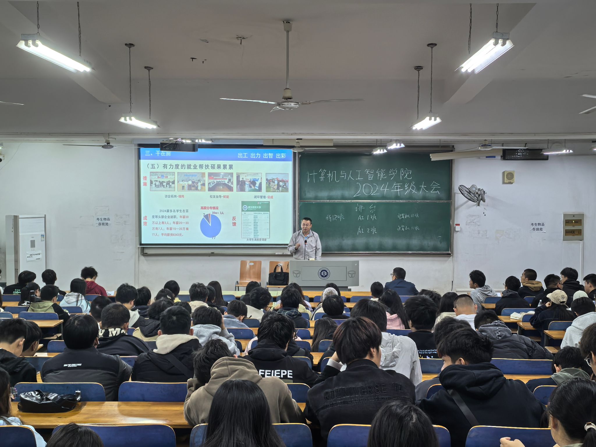 为更好地引导新生荣院爱院,了解学院近年来取得的成就,帮助新生做好大学学习规划,11月17日晚,开云kaiyun体育官方网站召开2024级新生年级大会,学院党委书记晏伟、党委副书记向涛,2024级新生辅导员和2024级全体新生共同参与。