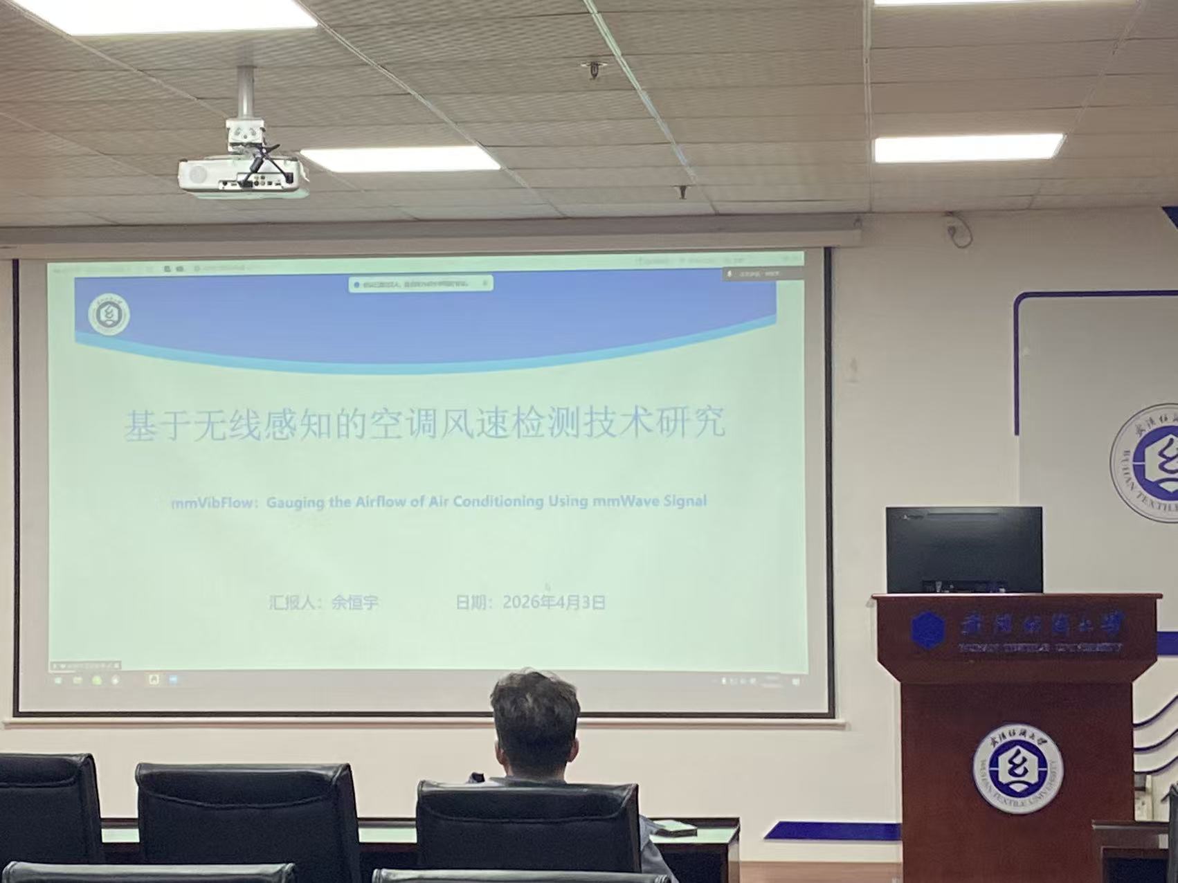 余恒宇同学分享的主题为“Gauging the Airflow of Air Conditioning Using mmWave Signal”。针对暖通空调(HVAC)末端气流监测面临的维护成本高、隐私泄露及环境噪声干扰等挑战,本研究提出一种基于毫米波雷达的非接触式监测系统—mmVibFlow。该系统通过捕捉风扇叶片的细微机械振动,实现风速档位分类与连续速度回归预测。为解决机箱强干扰下微弱信号提取难题,设计了物理特征引导的定位策略与结合MVDR波束成形的多级噪声消除算法。核心模型TimeFreqNet利用物理先验引导的周期重塑与频域多尺度卷积,有效捕捉细粒度时频特征。实验表明,该方法风速分类准确率达99.6%,回归均方误差仅0.05,并具备设备健康诊断潜力。