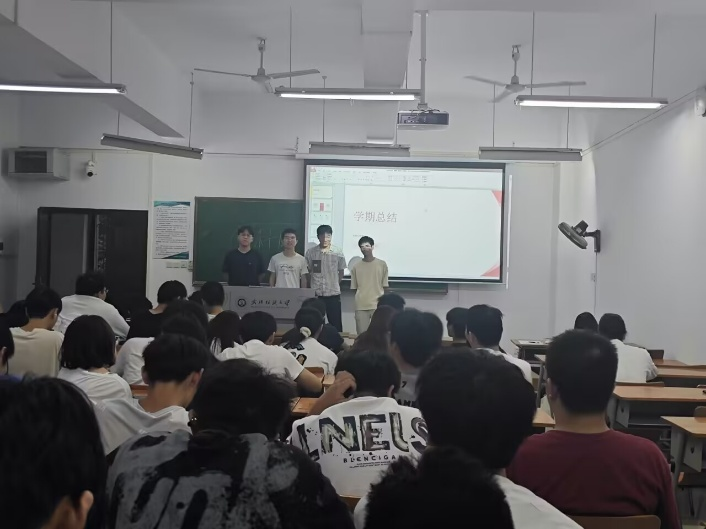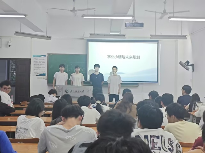 索一心汇报学业无挂科、考勤良好,社团经历提升了个人能力,同时坦言学习规划未落地且易紧张,未来将平衡规划、了解就业信息并培养自信;转专业的胡芹展示了重合课程成绩与多部门实践收获,计划补修专业、明确职业方向,还分享爱好并期待交友。此外,王家康、程洲、管业新、郑鑫、汤嘉乐等同学也依次分享学业情况:王家康编程类课程掌握较好,未来以就业为目标补足综合能力;程洲多门课程成绩优异且参与多项活动,将全力准备考研与提升专业技能;管业新上学期学习出勤良好,完成任务的同时在竞赛中获佳绩、收获志愿荣誉,未来计划学好课程、参加竞赛并攻克英语四级;郑鑫顺利完成学业任务并反思不足,计划优化学习管理;汤嘉乐部分课程成绩亮眼但存在学科短板,将制定计划补足;石轩无挂科但部分科目待提升,会针对性学习并为考研和编程能力努力;胡鼎文学业有优有缺,课外收获丰富,已选定考研院校并制定计划提升能力。