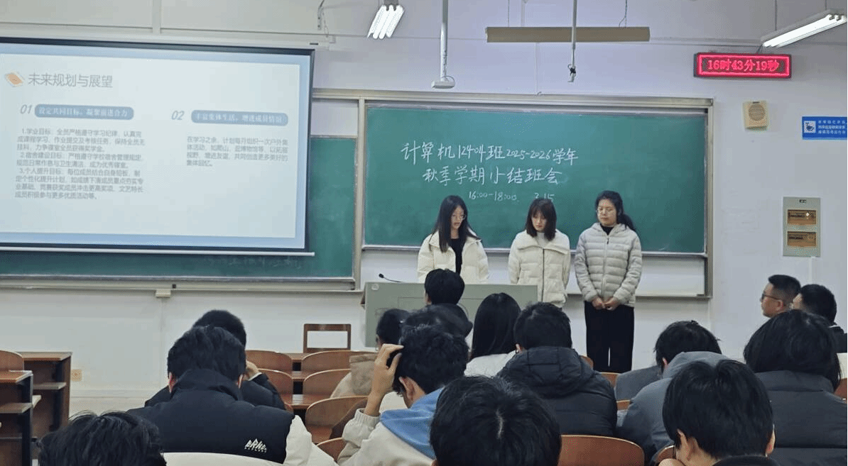 此次主题班会既是对大二上学期的全面复盘,更是对新学期的全新谋划,让全体同学清晰认识到自身的优势与不足,进一步凝聚了班级共识、明确了发展方向。计算机 12404 班全体同学将以此次班会为契机,把规划转化为实际行动,以更加昂扬的姿态、更加务实的作风砥砺前行、携手共进,持续推动班级学风建设走深走实,在新学期书写学业成长与班级建设的新篇章。
