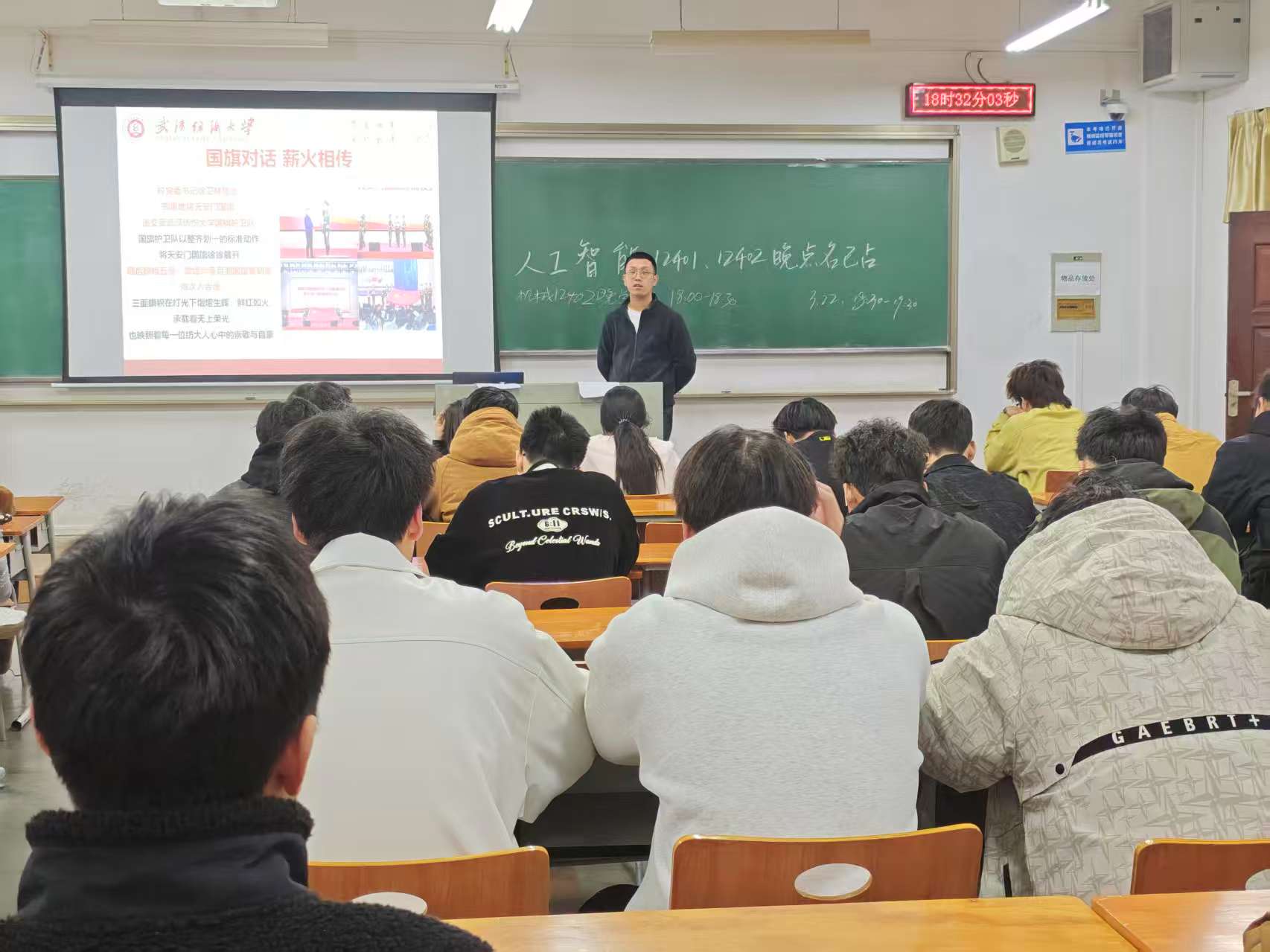 班会最后,各班班长围绕“警惕诈骗新手法,不做电诈工具人”开展安全教育。结合当前校园电信诈骗的高发态势,班长通过剖析典型案例,提醒同学们从源头上守护好个人的“钱袋子”,进一步筑牢校园安全防护墙。