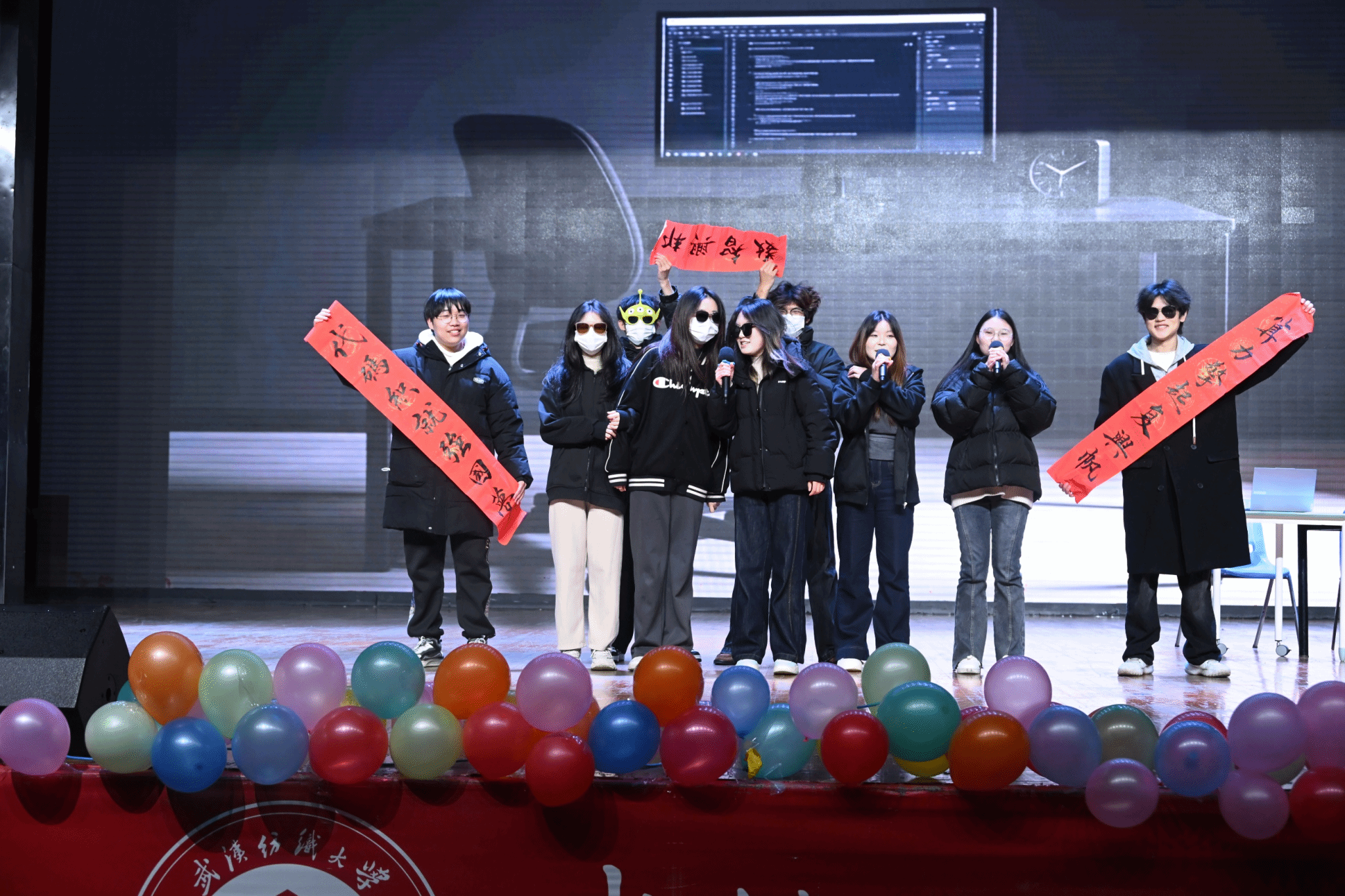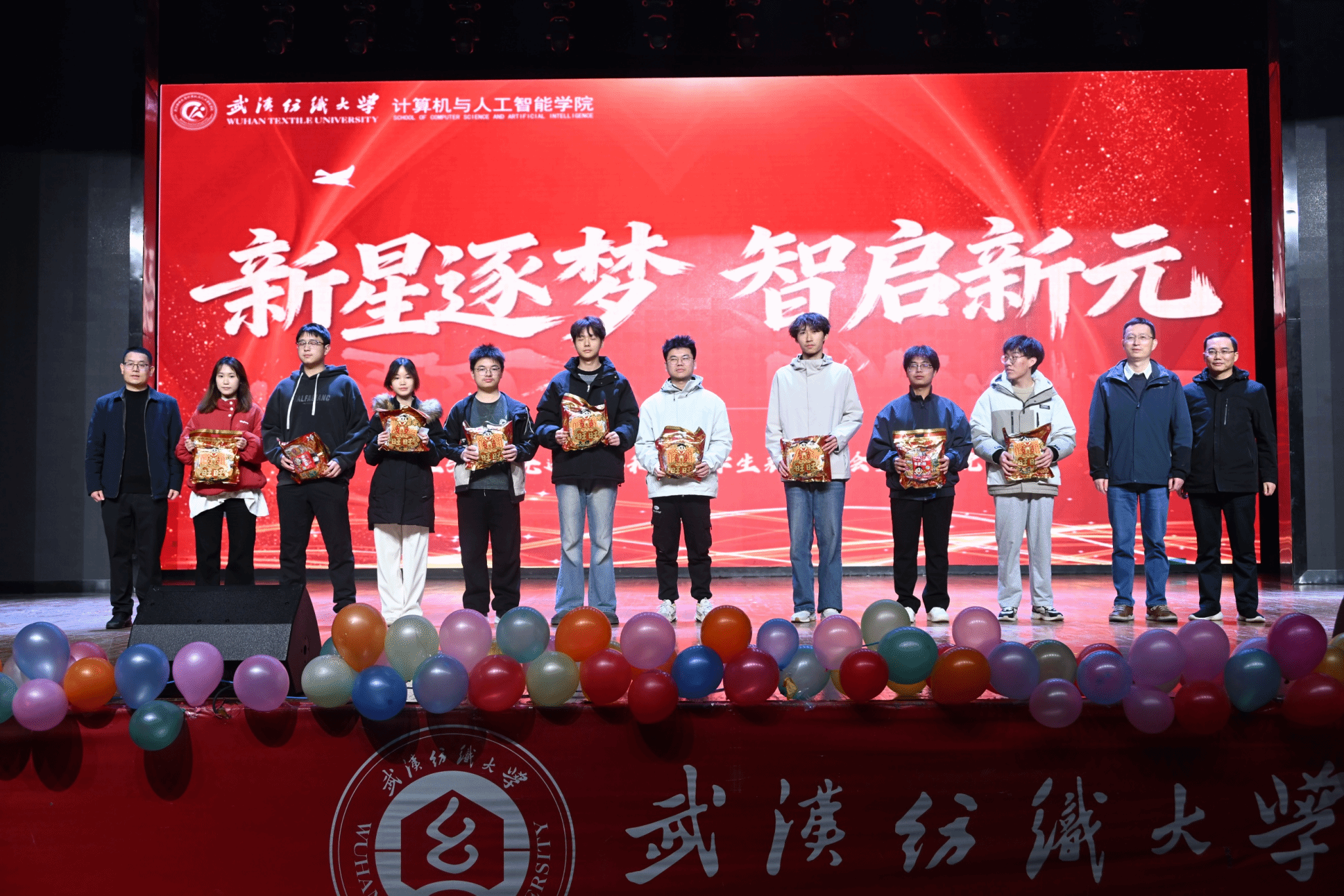 表彰大会落下帷幕后,以“新星逐梦·智启新元”为主题的新年晚会,在杨冠宇、彭佳豪、韩萱怡、杨欣怡四位学生主持人的巧妙串联下正式启幕。晚会精心设置“星火·初燃”“征途·共赴”“破晓·智现”“星河·同辉”四个篇章,穿插趣味互动抽奖环节,歌舞、小品、器乐、朗诵等各类节目轮番登台,全方位展现了计智学子的青春风采与多元才华。