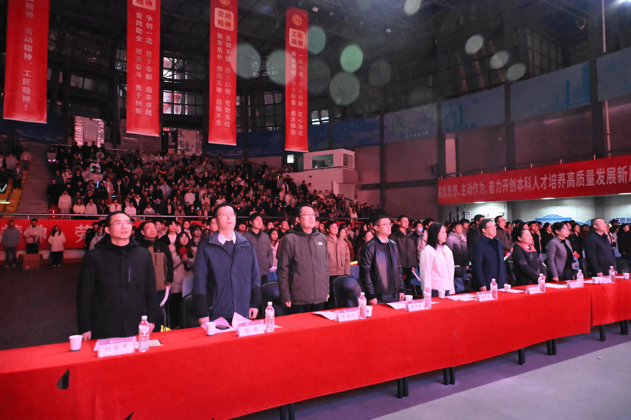 活动在灵动酷炫的机器人表演中拉开帷幕。各式智能机器人依次完成精准舞蹈、趣味互动等精彩环节,灵动的姿态与默契的配合引得现场掌声雷动、欢呼不断。随后,全体参会人员庄严肃立,奏唱国歌。